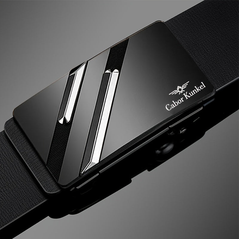 Upgrade your style with this sleek faux leather belt featuring an automatic alloy buckle. Perfect for any outfit or occasion.
