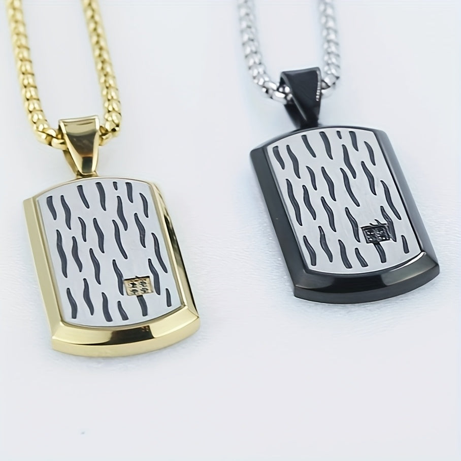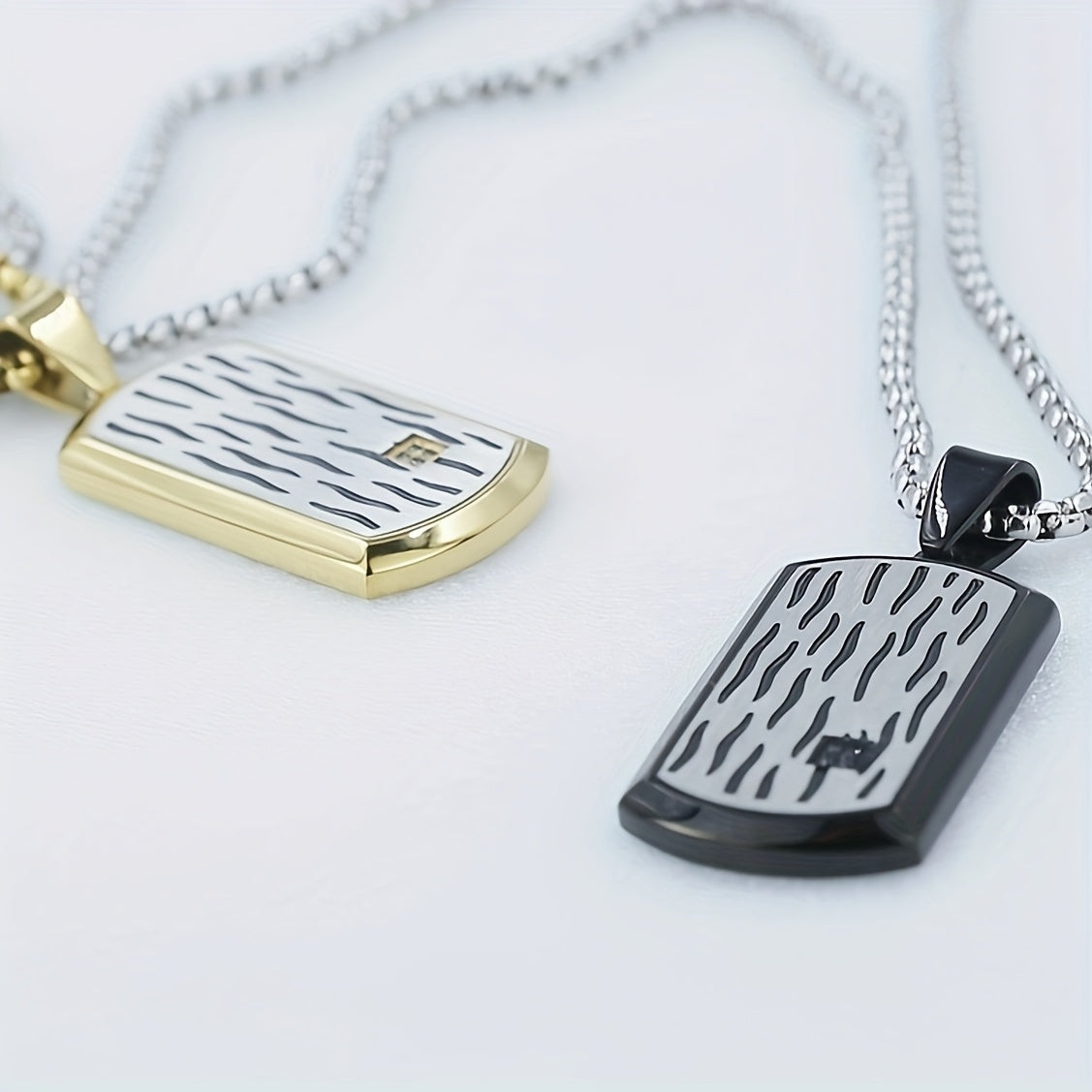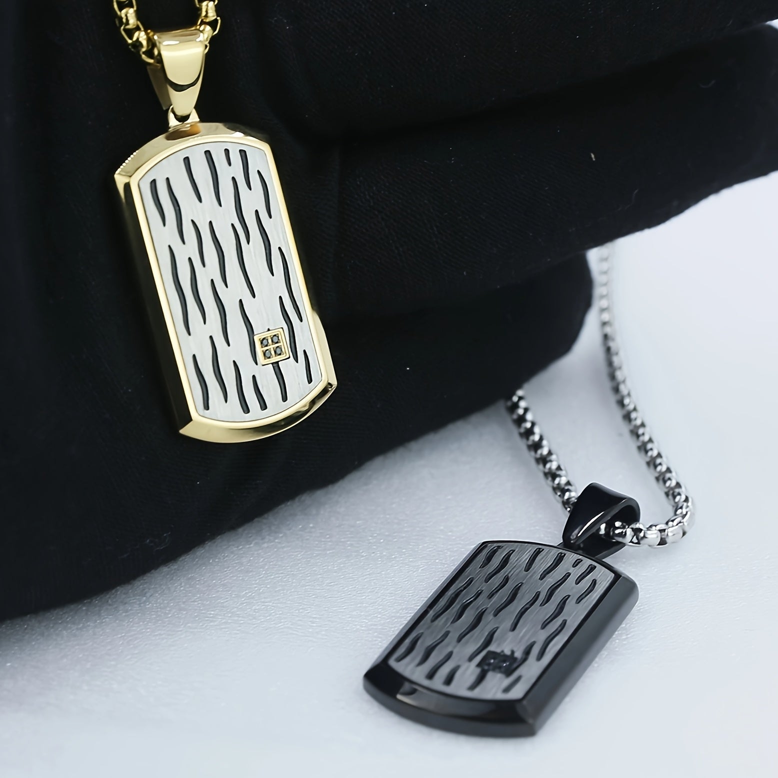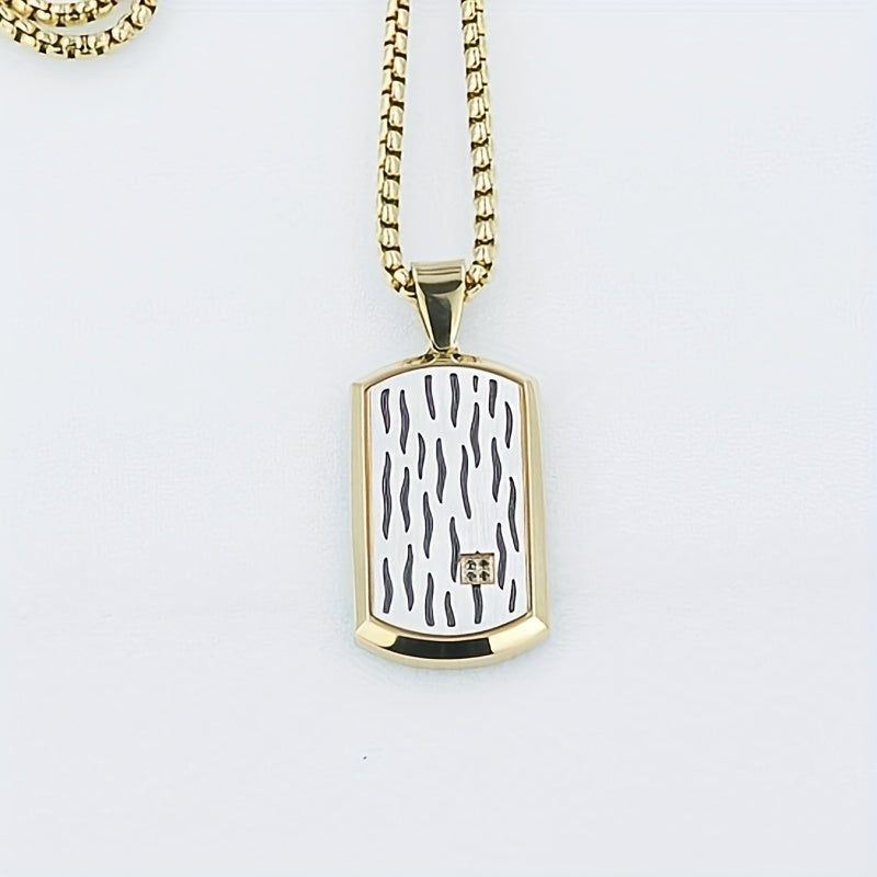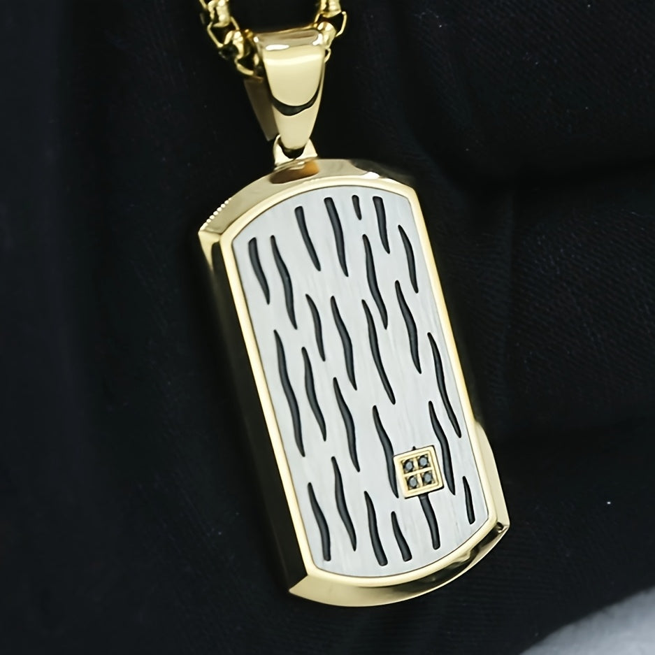 Men's Golden Stainless Steel Dog Tag Pendant Necklace with Cubic Zirconia Inlay