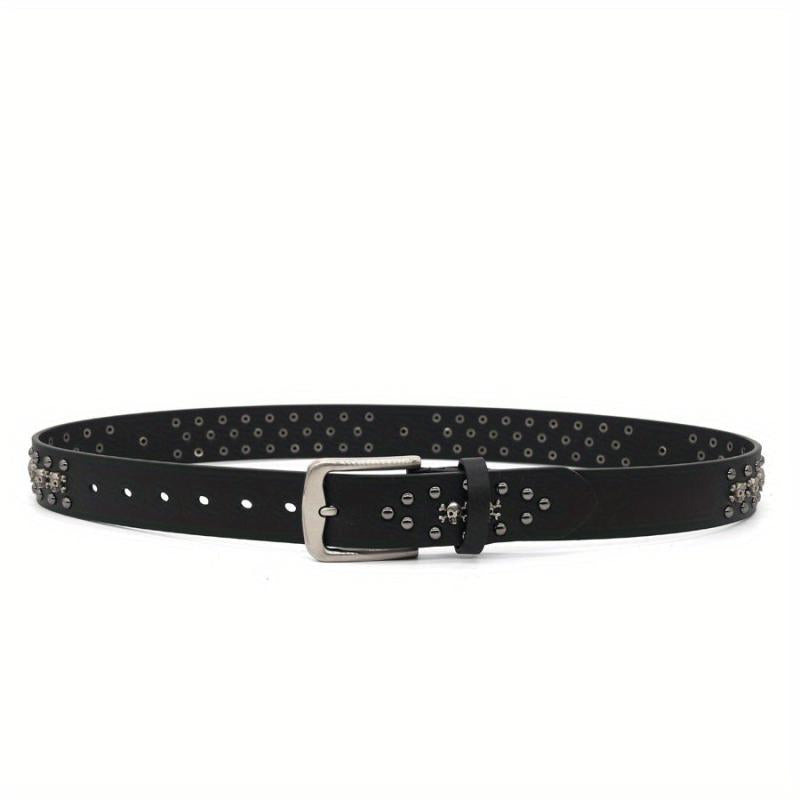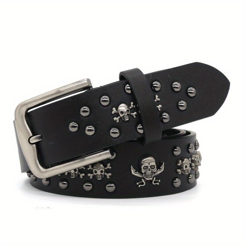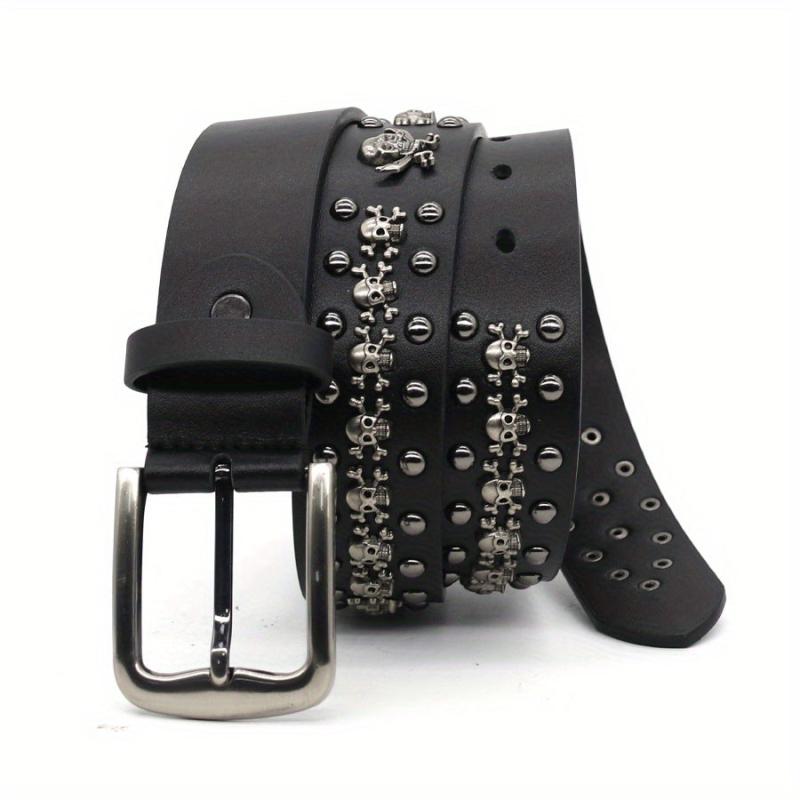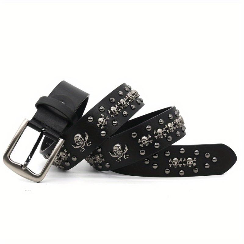 Men's Gothic Punk Skull Belt with Rivets & Buckle Faux Leather Y2K Accessory