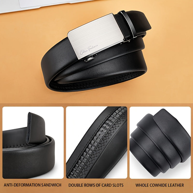 This versatile men's leather belt is crafted from genuine cowhide and is suitable for all daily occasions, adding a touch of style to both suits and jeans.