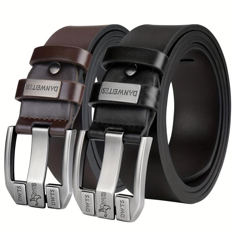 This men's belt features a versatile pin buckle design with a vintage denim style, perfect for adding a touch of rugged charm to any outfit.