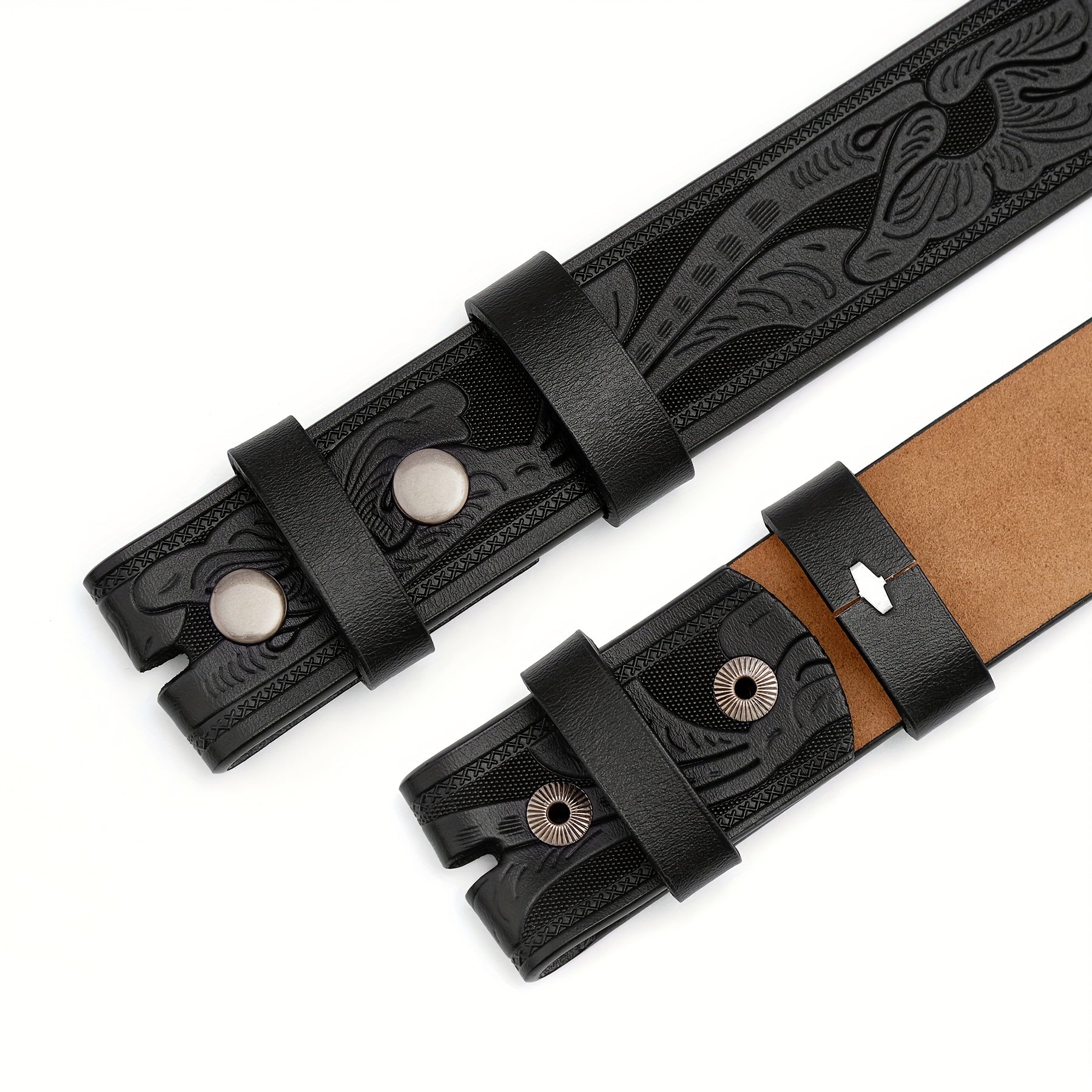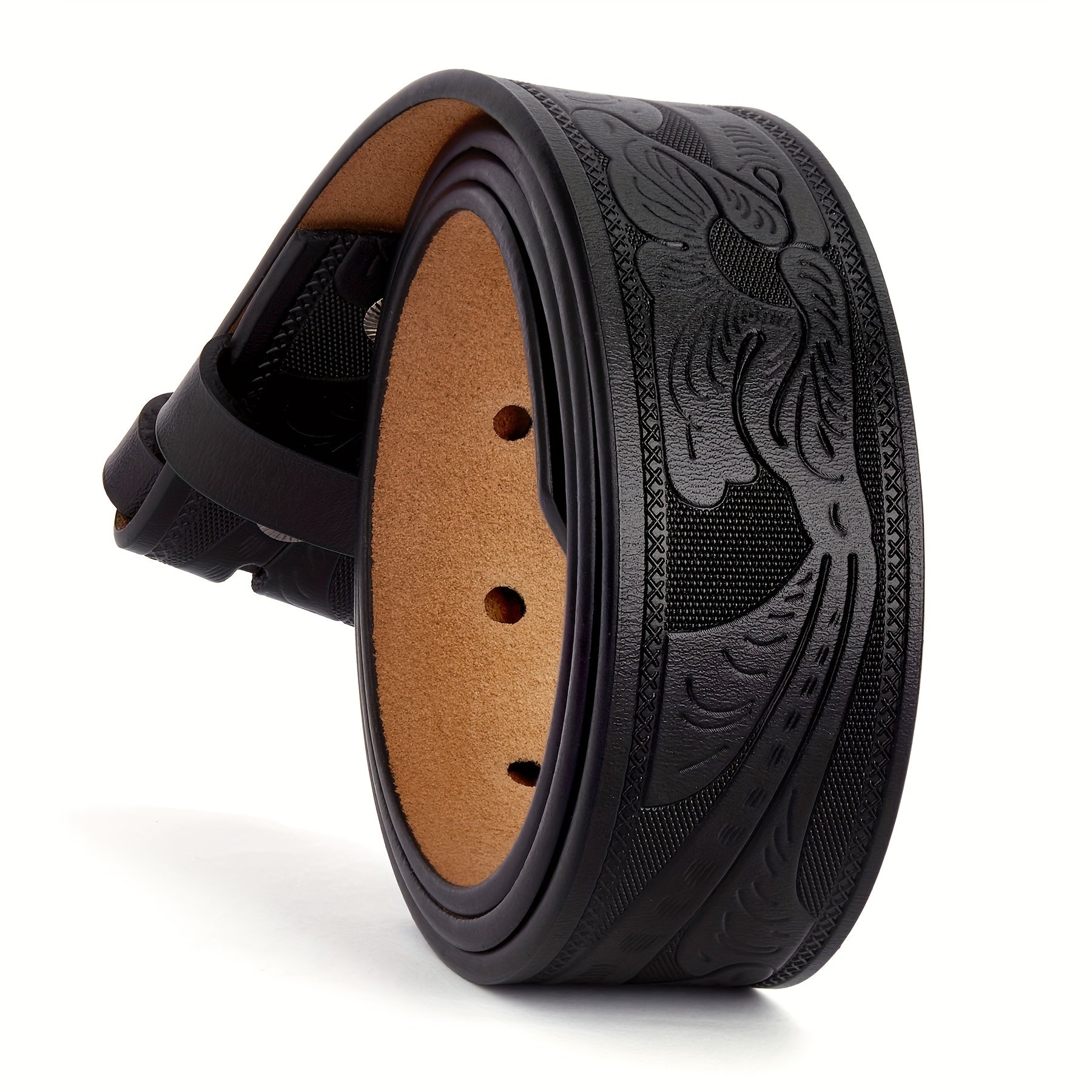 Men's Vintage Embossed Cowboy Belt Full Grain Leather Retro Style