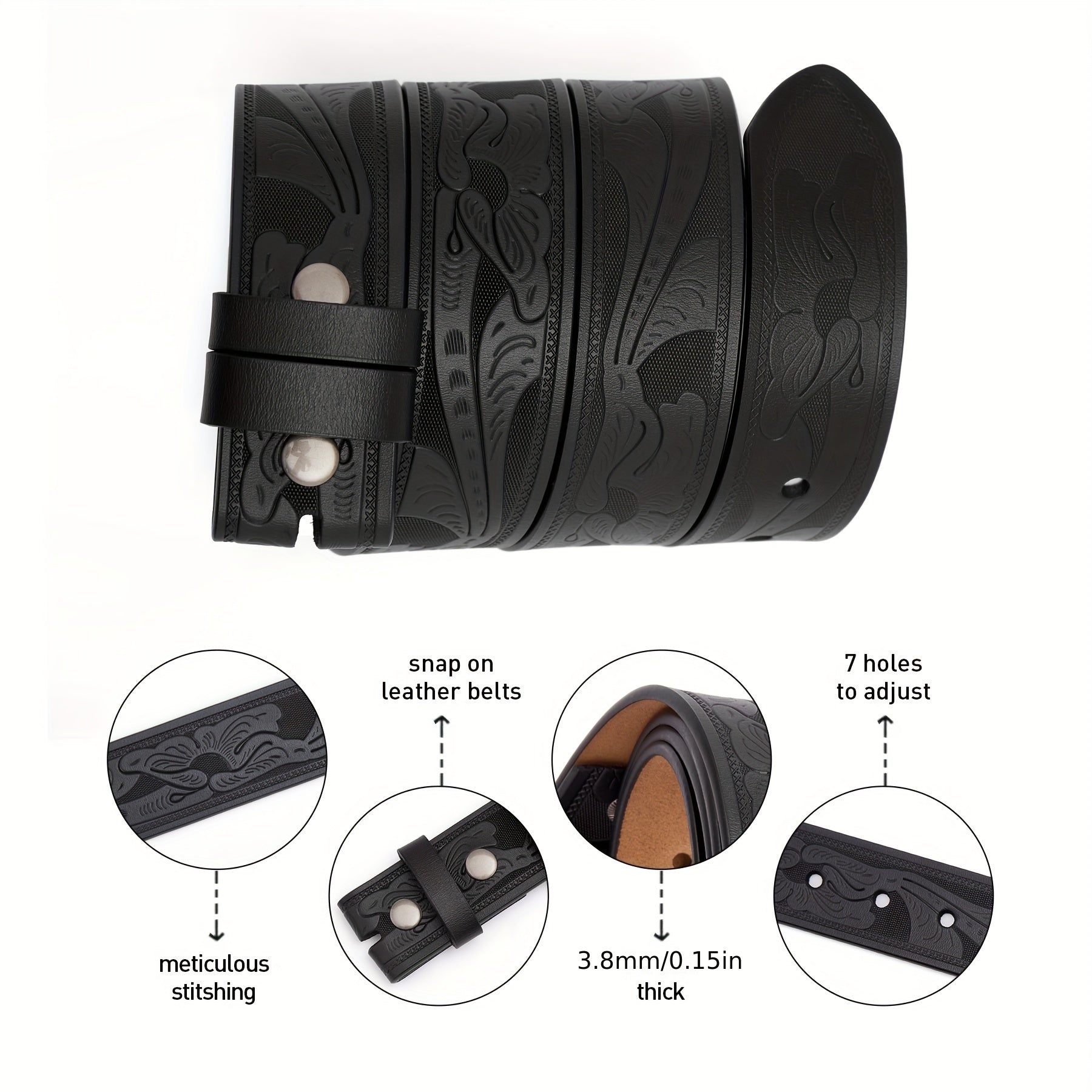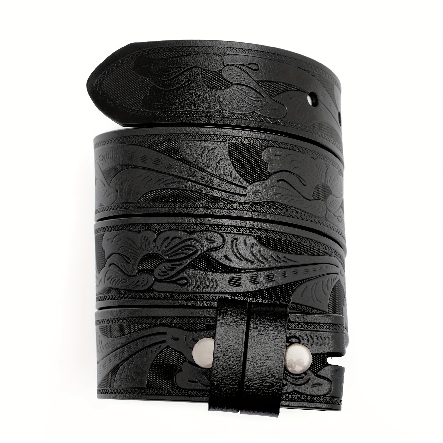 This men's vintage embossed cowboy belt is crafted from full grain leather, offering a timeless retro style. No buckle required for a classic look.