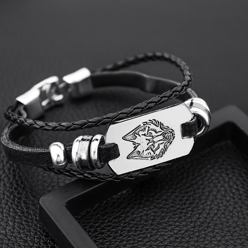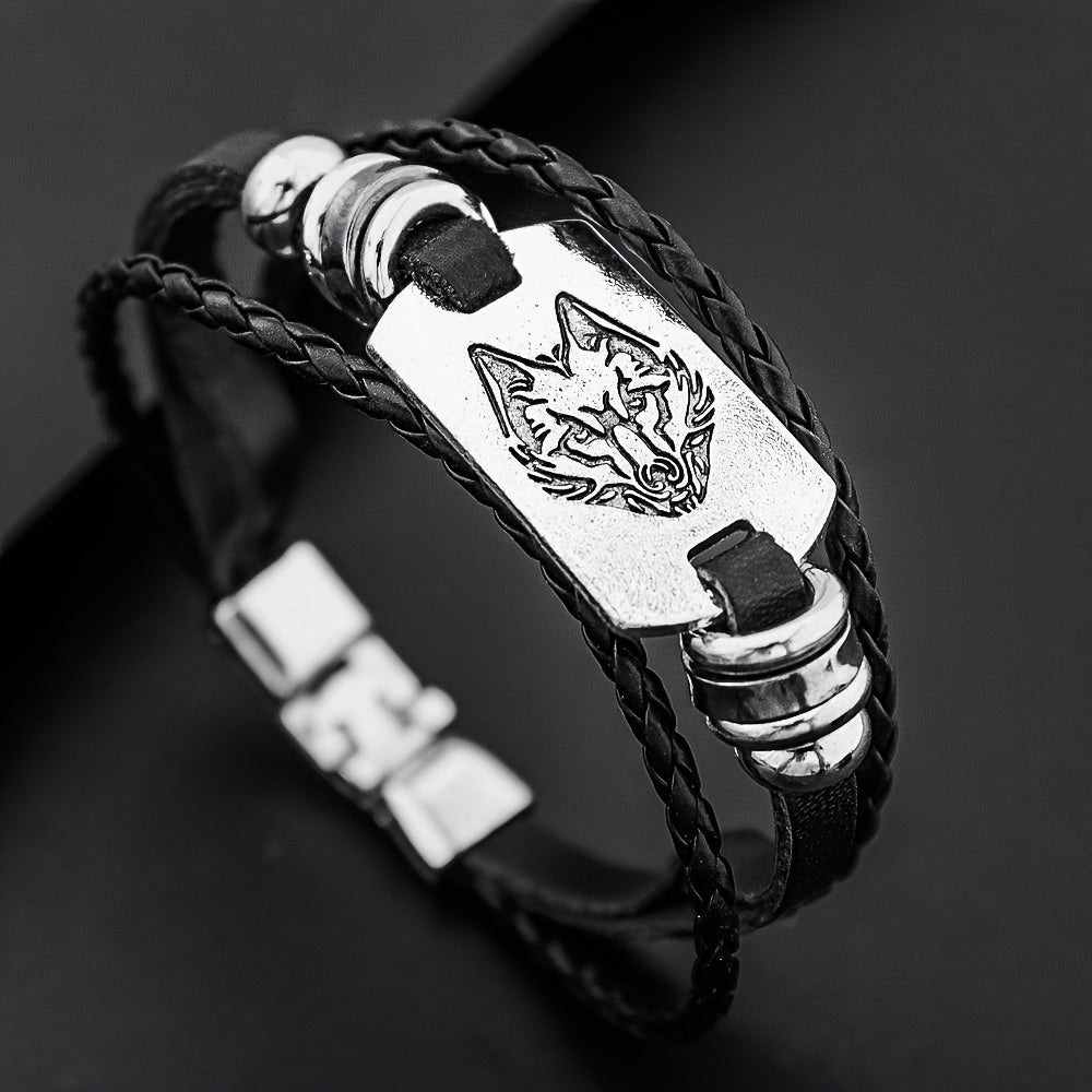 Siberian Wolf Head Emblem Faux Leather Bracelet Vintage Style