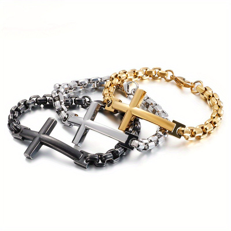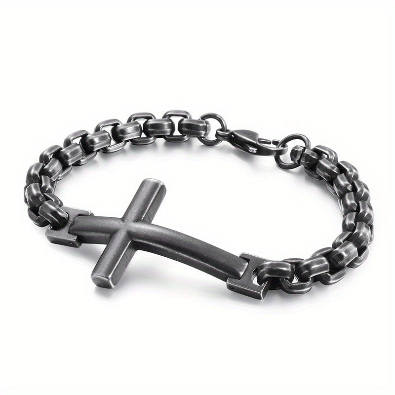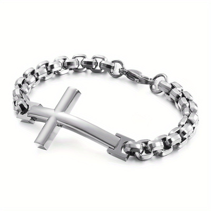 Enhance your style with this stainless steel bracelet featuring a cross square pearl design. Perfect accessory for men.