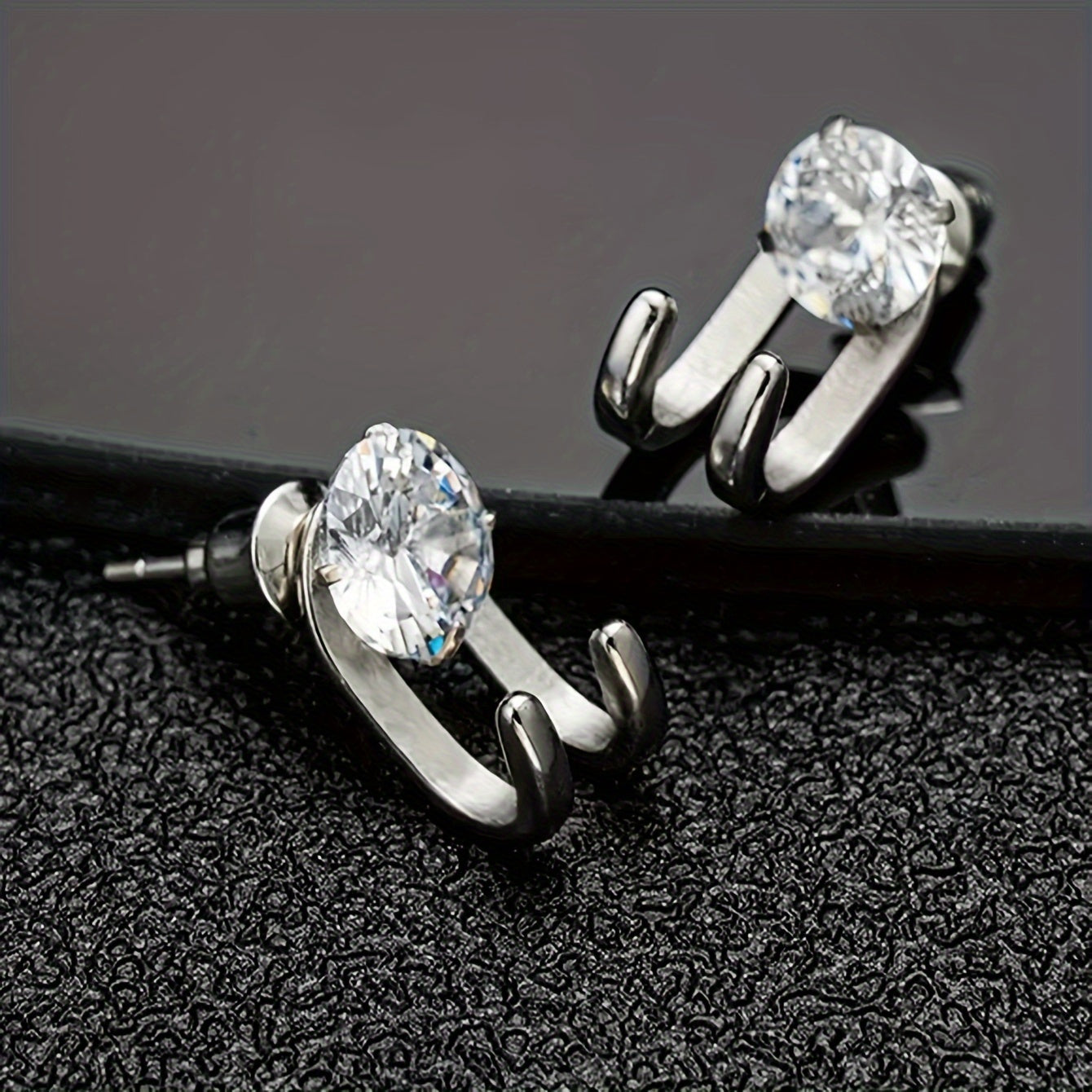These stylish men's earrings feature a round synthetic zirconia stone in a two-claw setting. Perfect for adding a touch of elegance to any outfit.