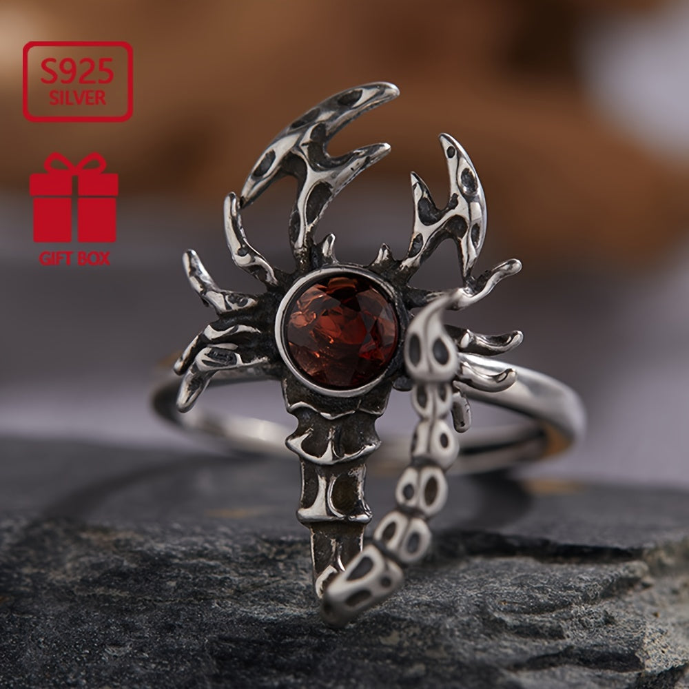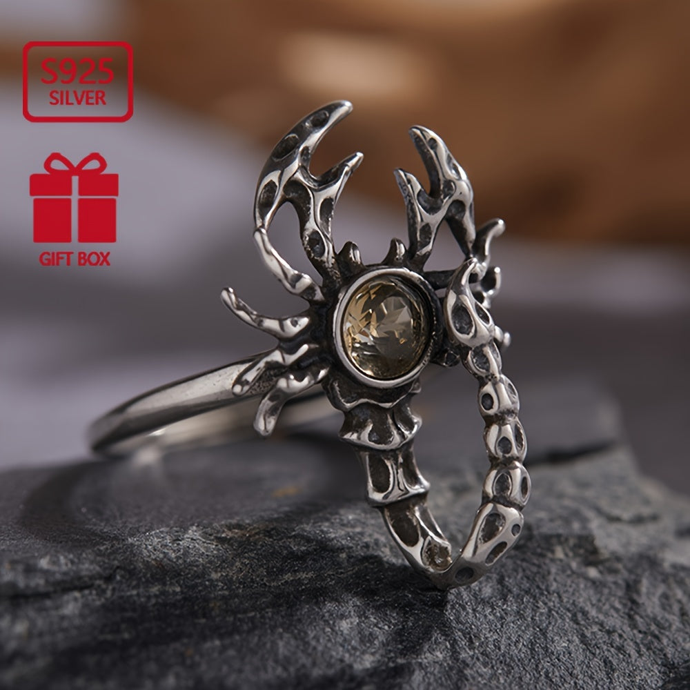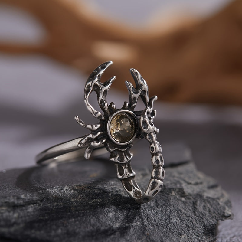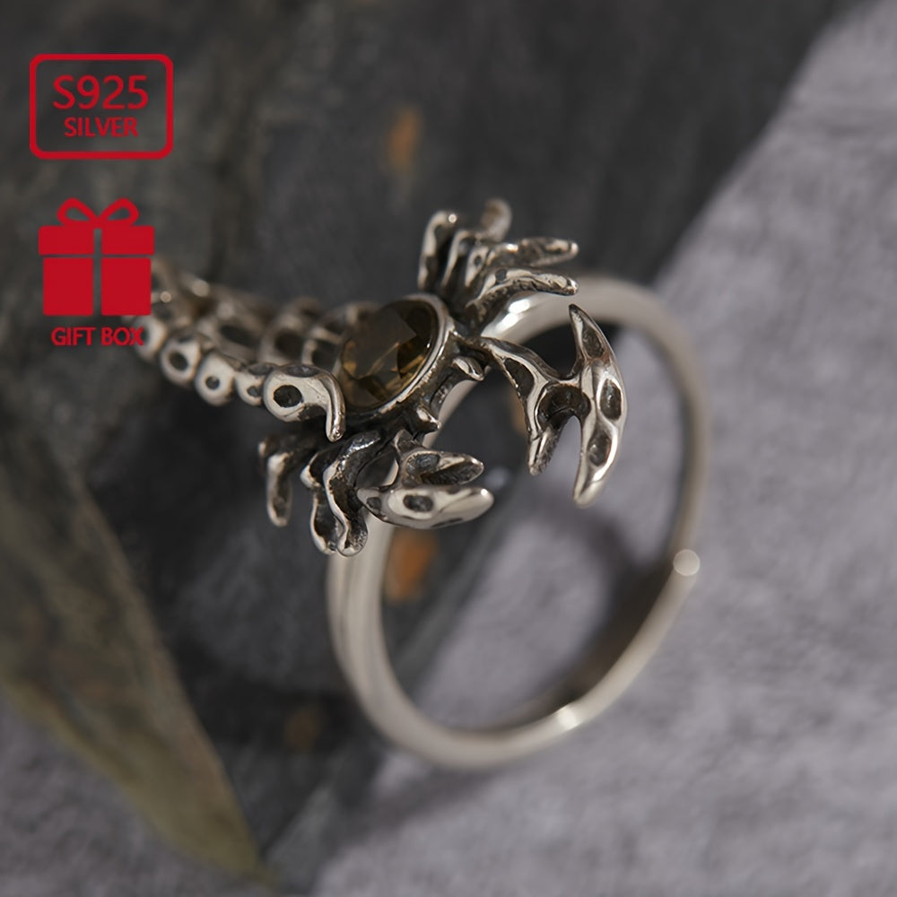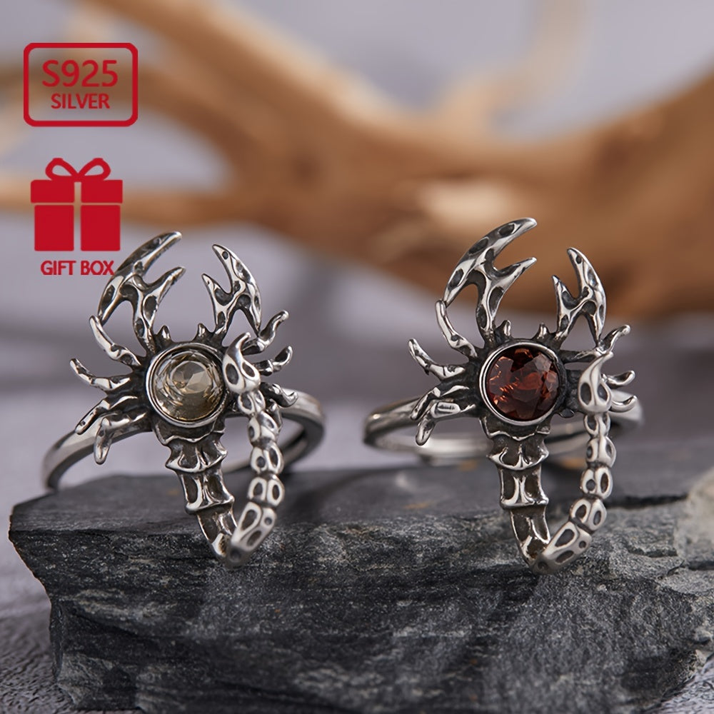 Vintage tribal scorpion cuff ring made of genuine S925 sterling silver. Adjustable design suitable for daily wear and perfect for Halloween. No plating for lasting quality.