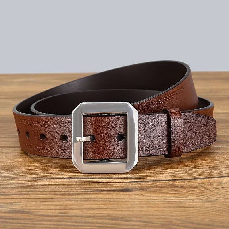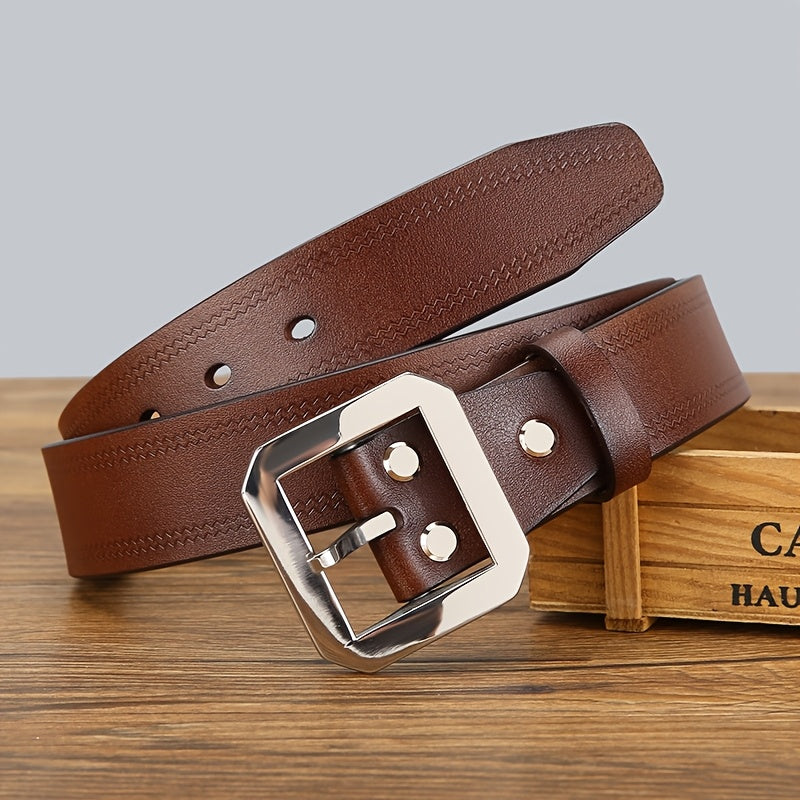 This stylish belt is made of high-quality cowhide and features a vintage button design. It is durable and suitable for everyday wear.