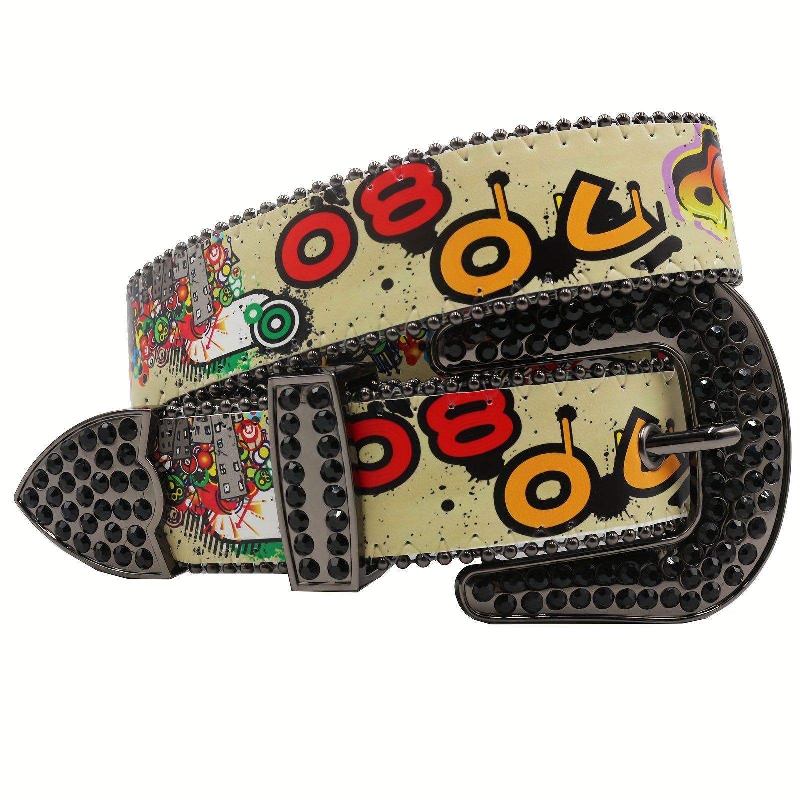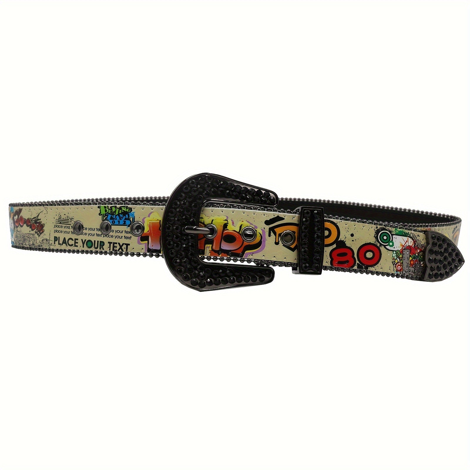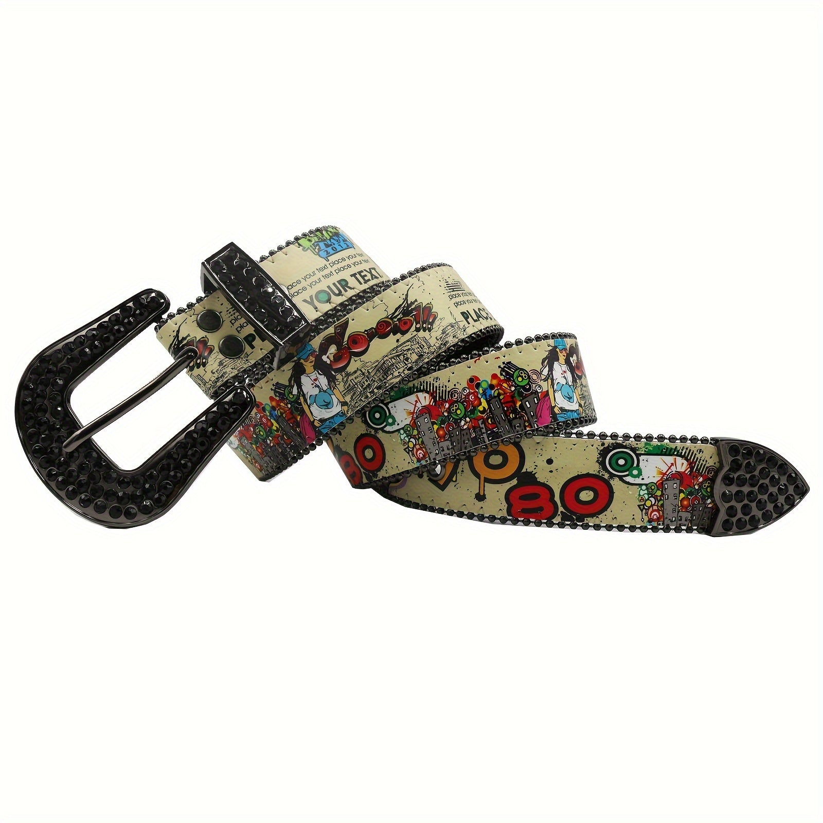 This Y2K belt features a unique print design and a punk rhinestone pin buckle. Suitable for both men and women. Perfect for adding a Western flair to your jeans.