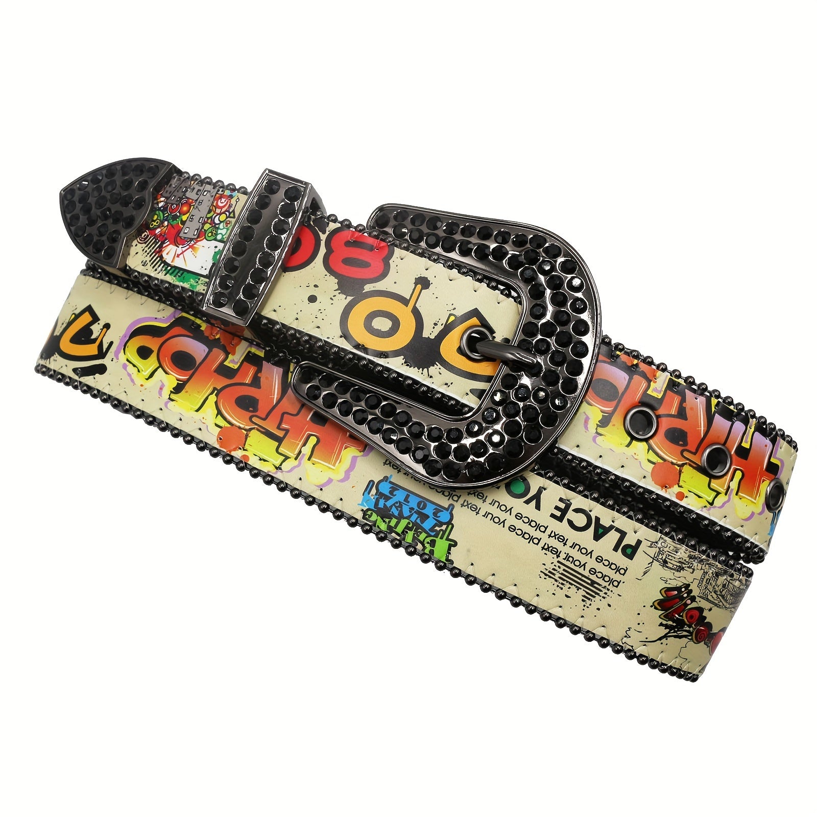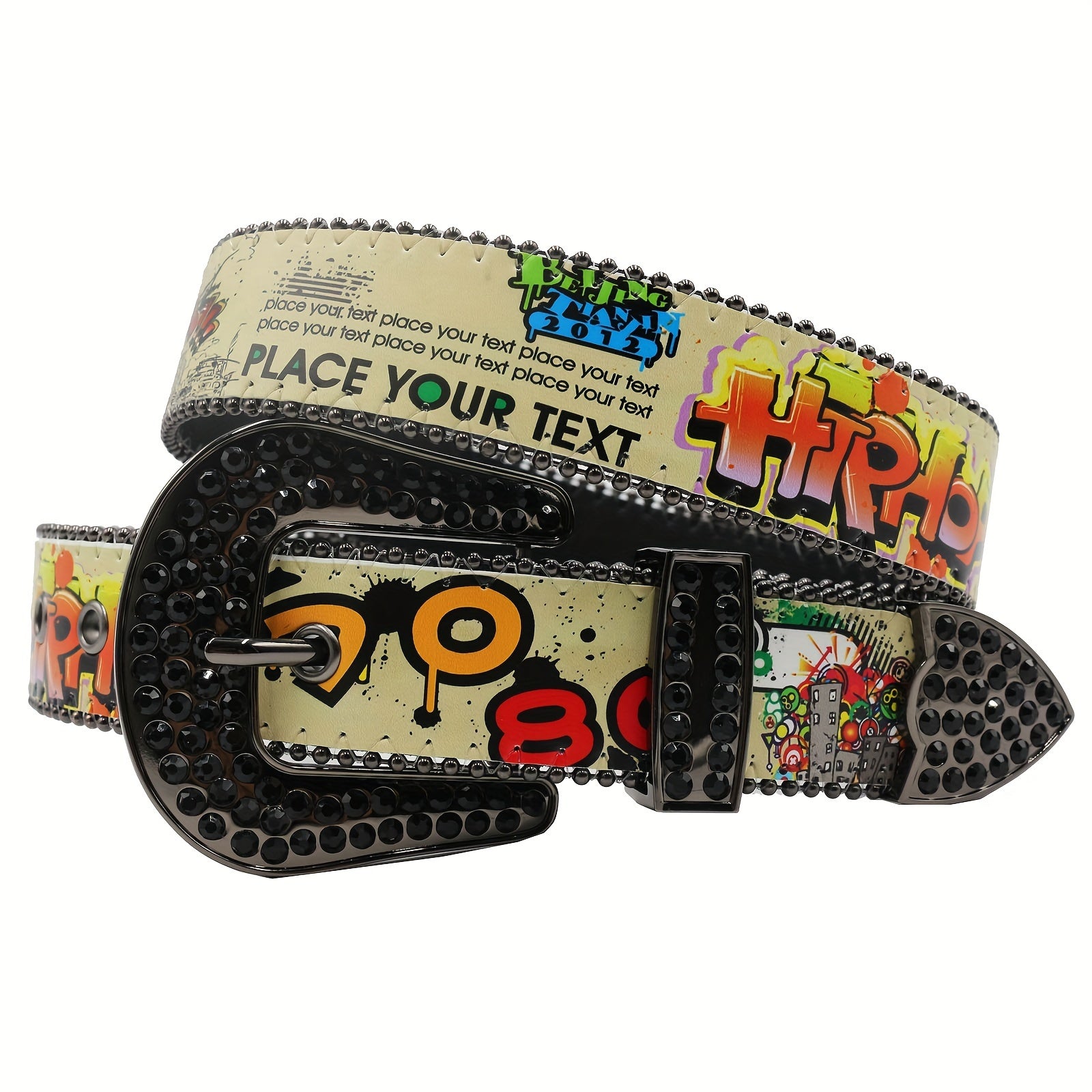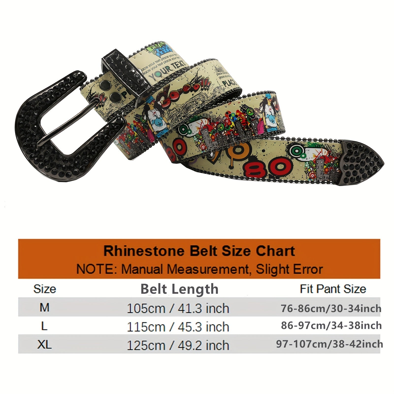 This Y2K belt features a unique print design and a punk rhinestone pin buckle. Suitable for both men and women. Perfect for adding a Western flair to your jeans.