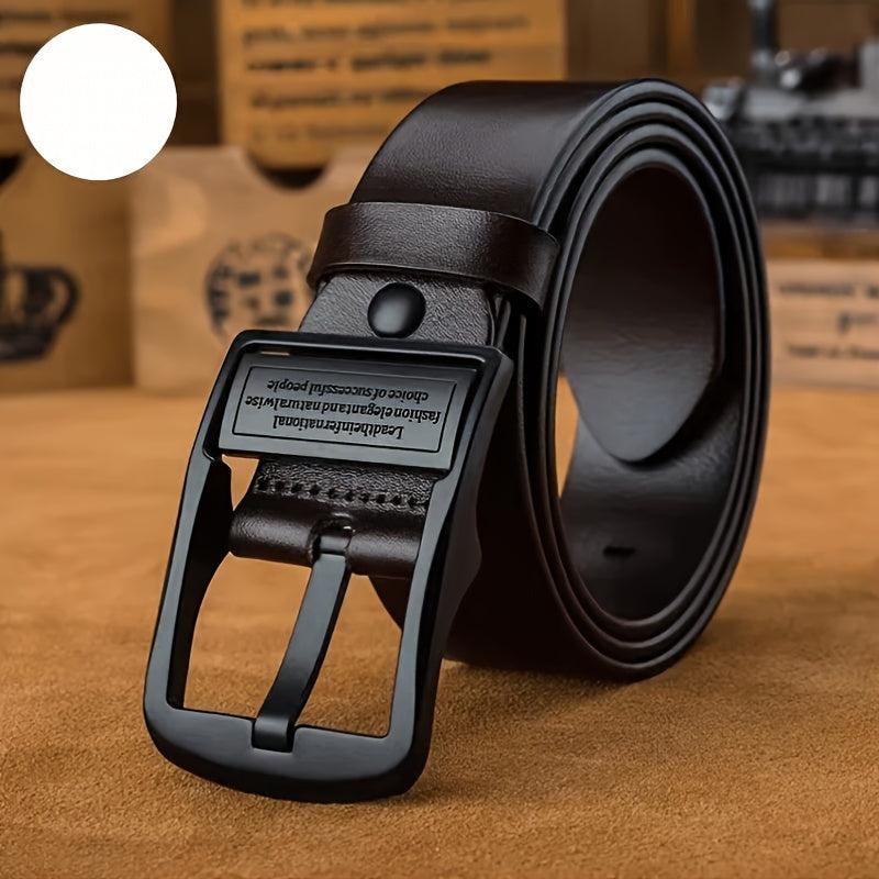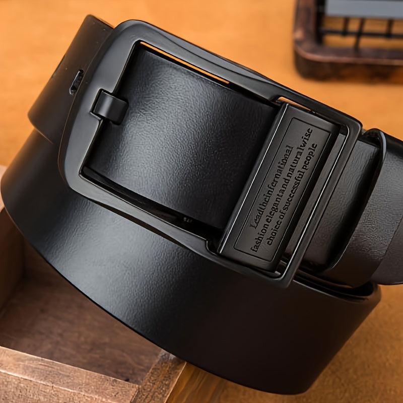 This men's belt features a square alloy buckle and is made from double sided faux leather, perfect for business or casual wear.