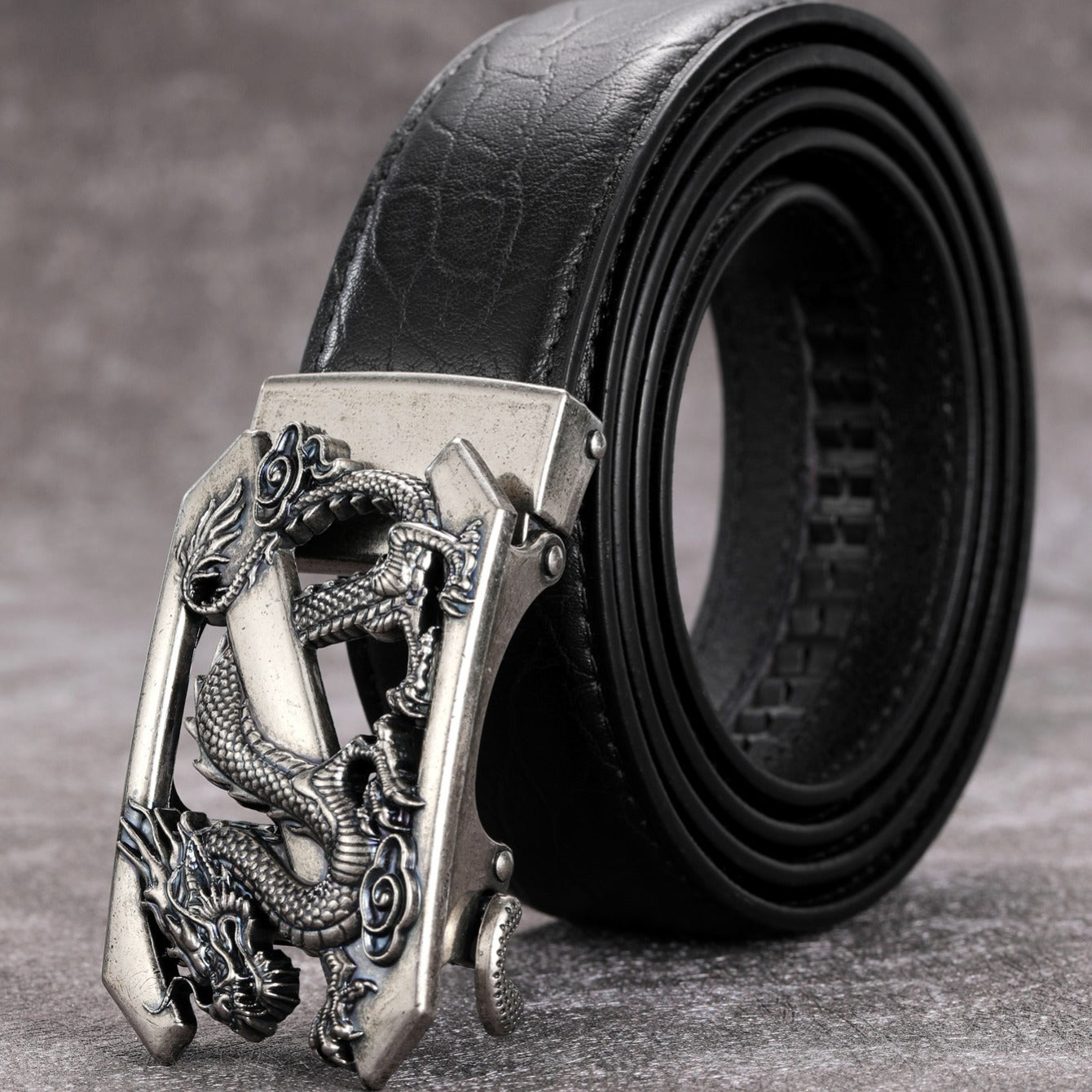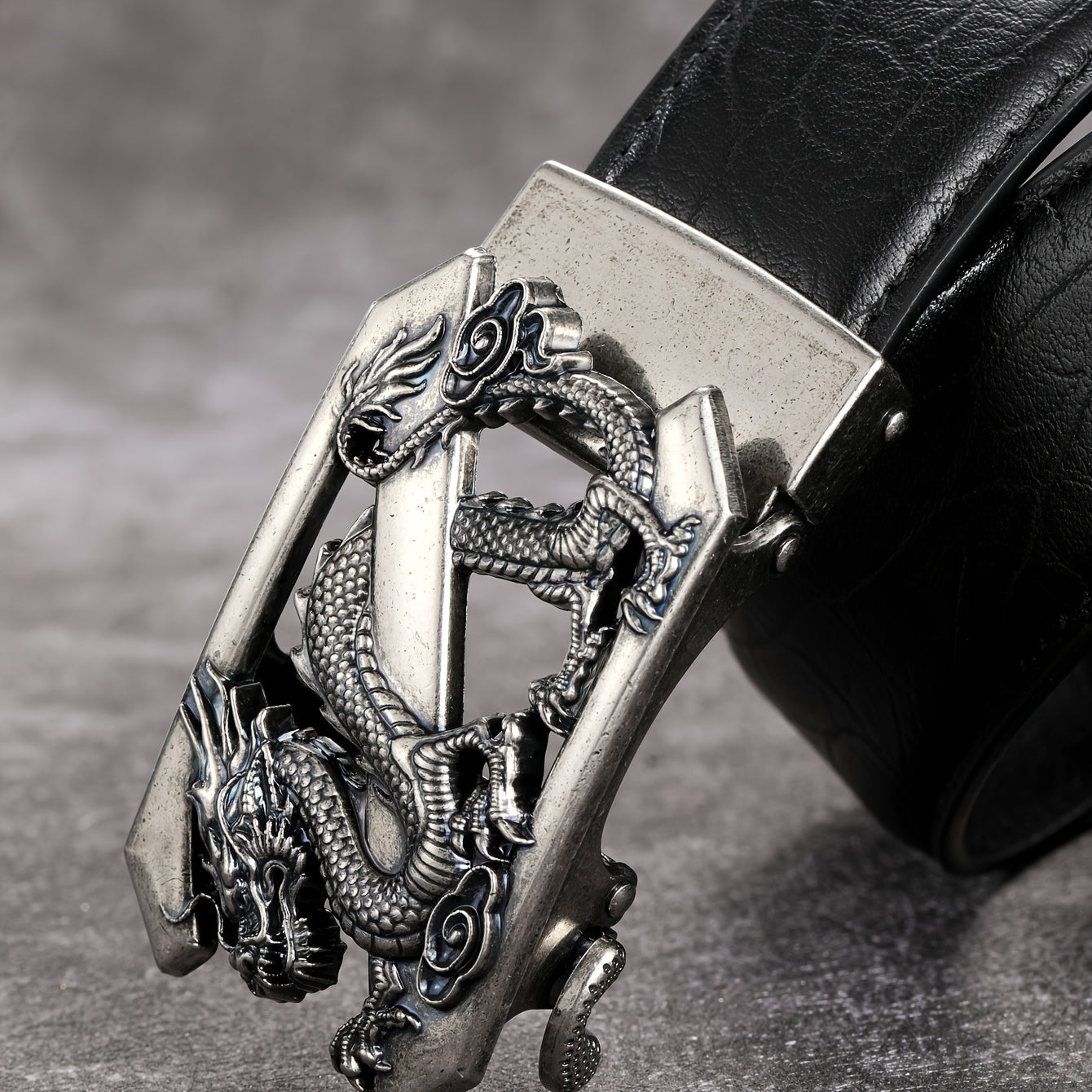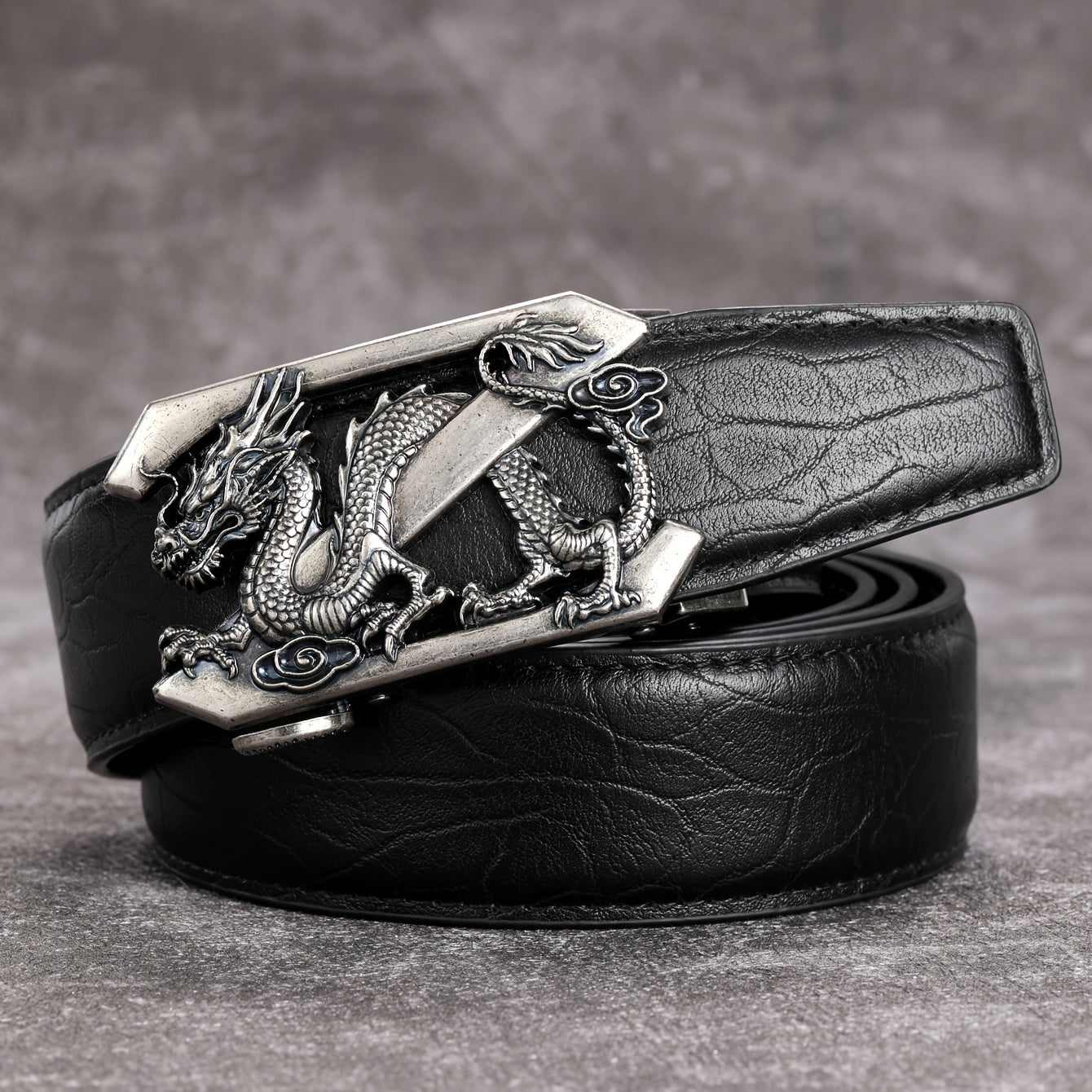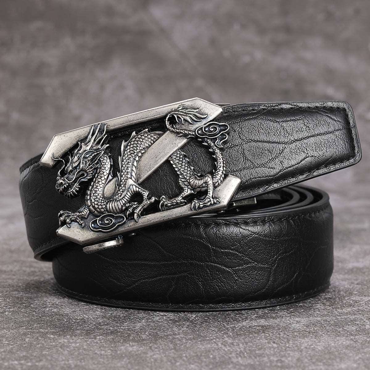 Add a touch of timeless style to your attire with this vintage men's belt featuring a silver dragon pattern and automatic buckle.
