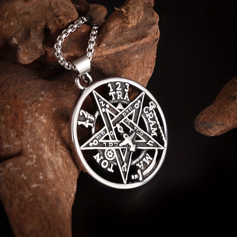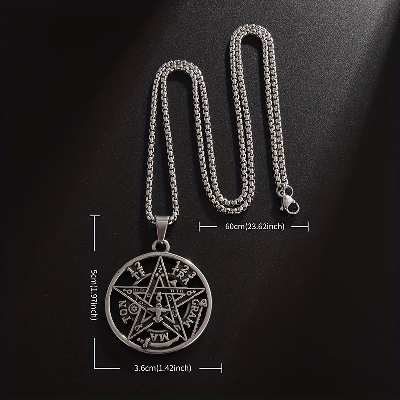 This necklace features a vintage witchcraft pentagram pendant crafted from stainless steel. It serves as a powerful amulet for men and women.