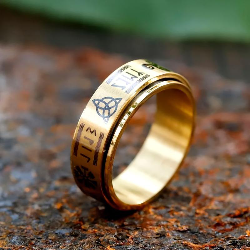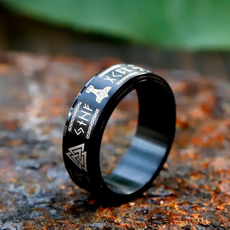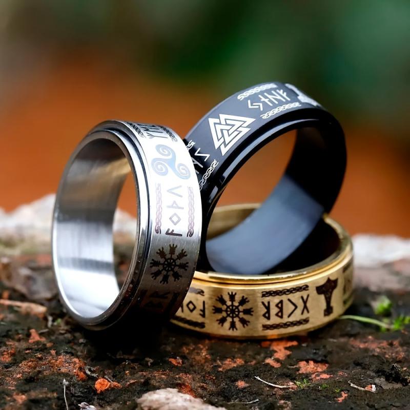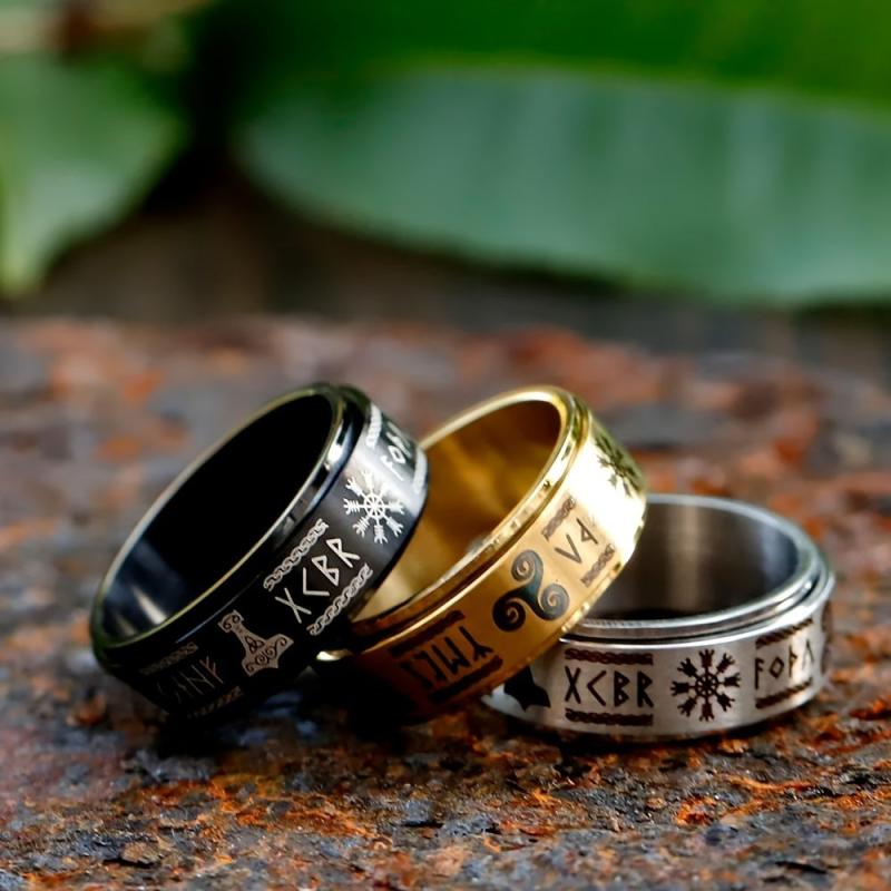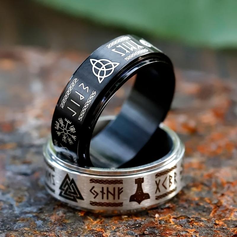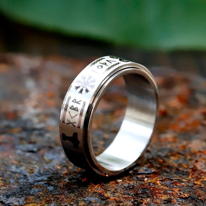 This stylish vintage ring features a rotating design with ancient Viking rune engravings, perfect for men and women. Made of stainless steel, it's a unique and meaningful gift.