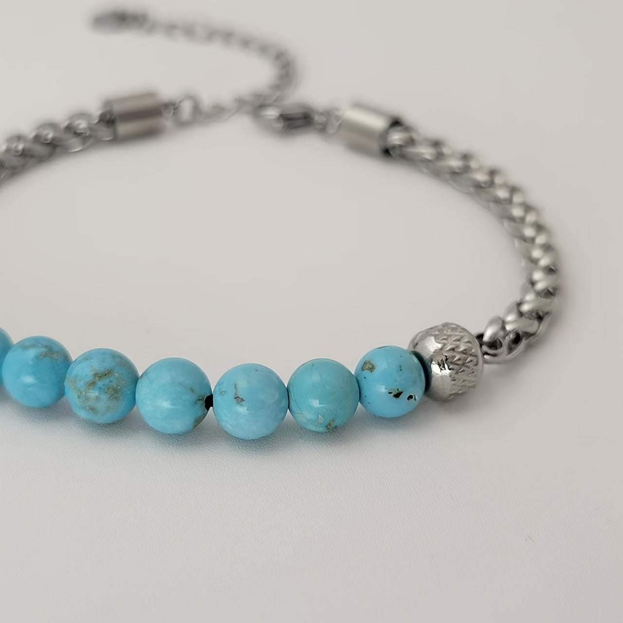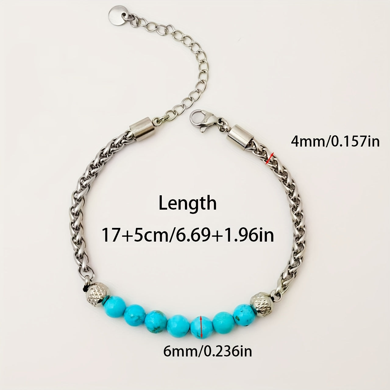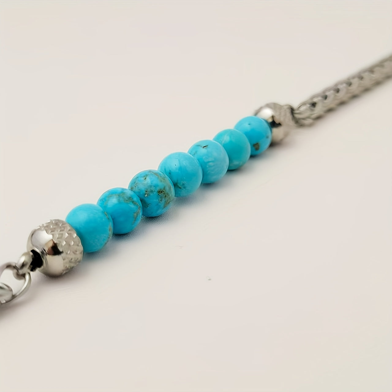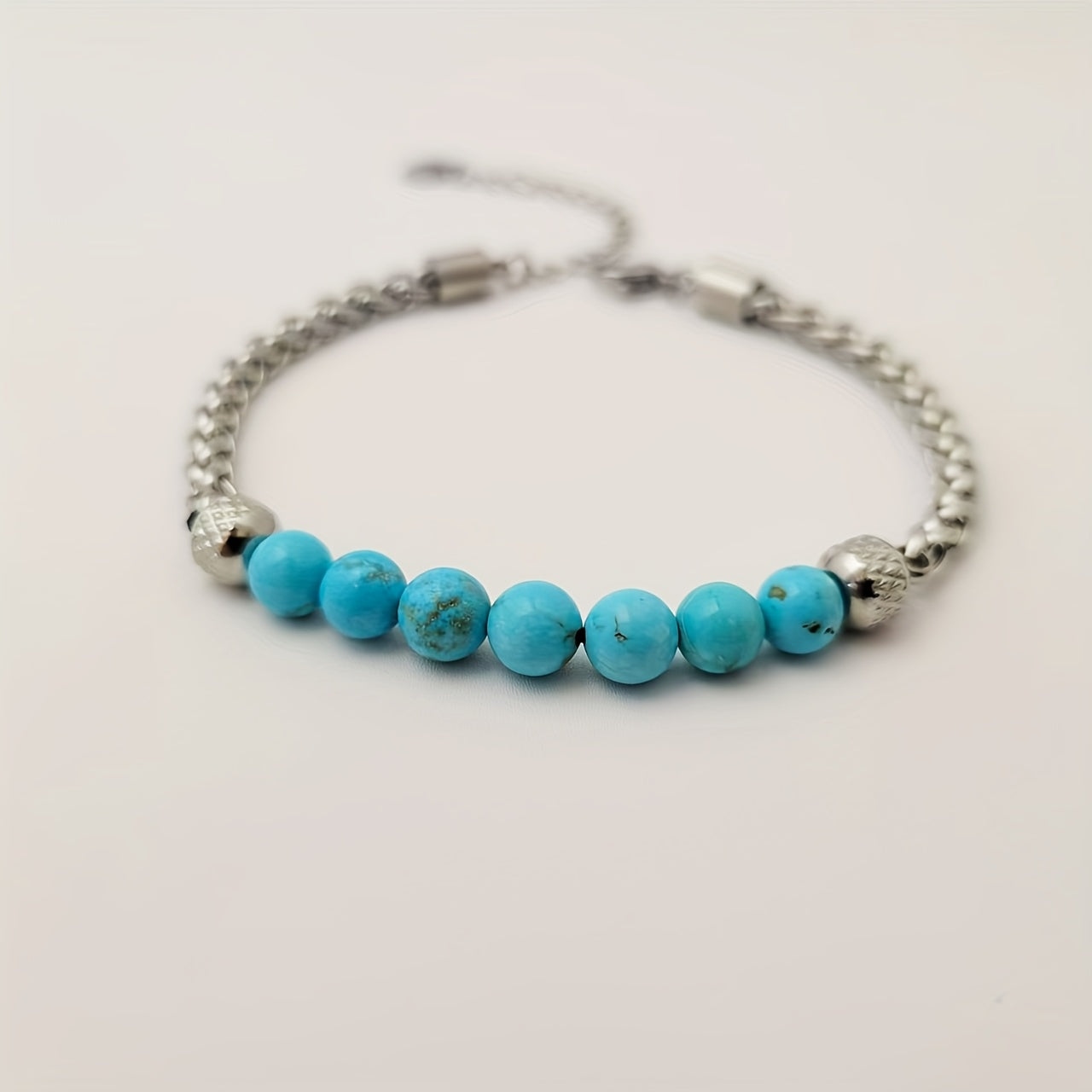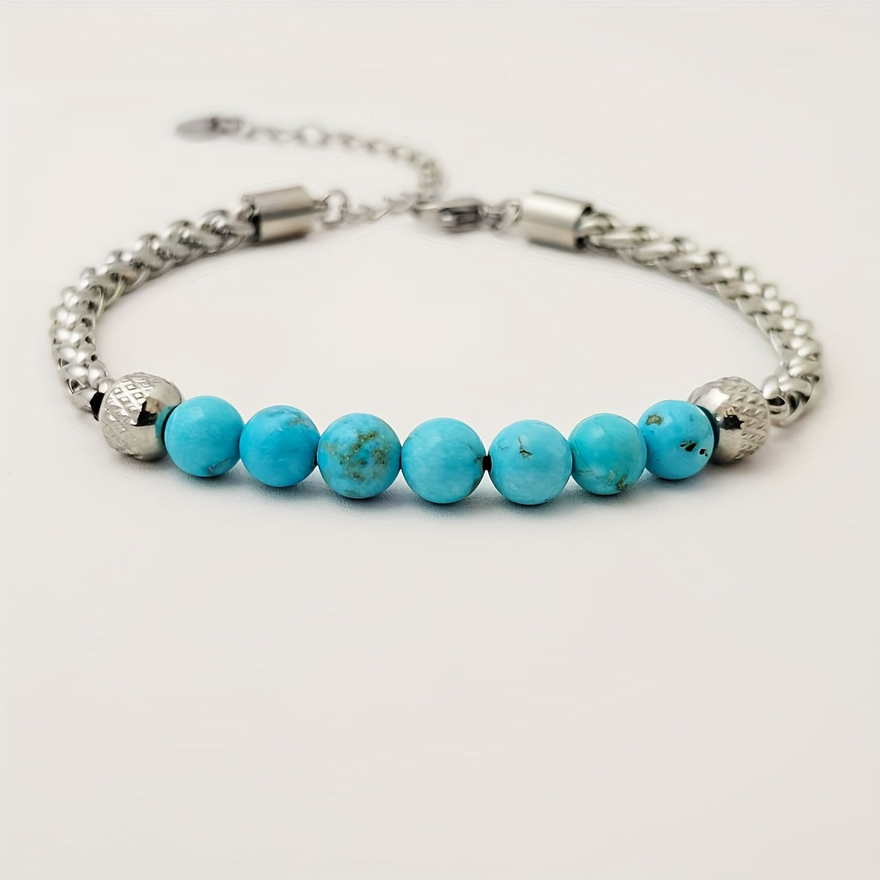 This adjustable bracelet is made of high-quality titanium steel and features synthetic turquoise beads, perfect for daily wear, parties, and vacations.
