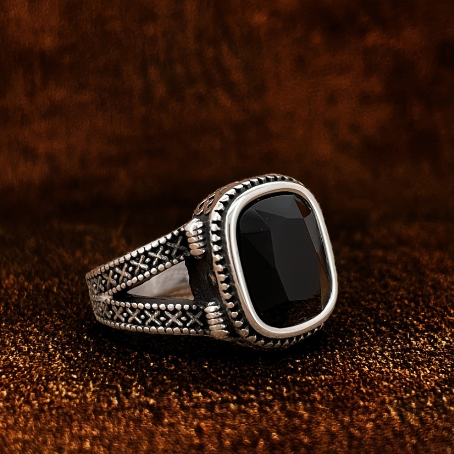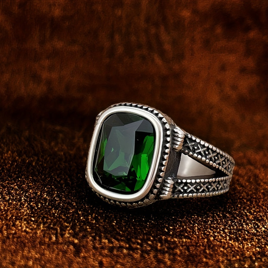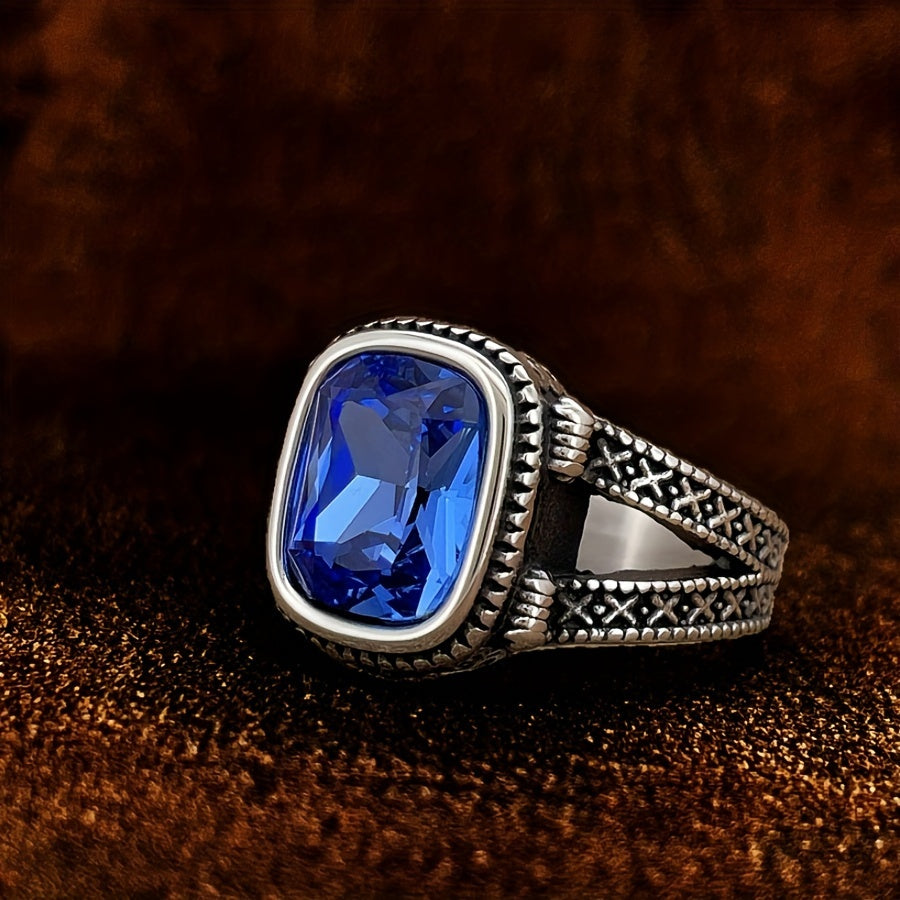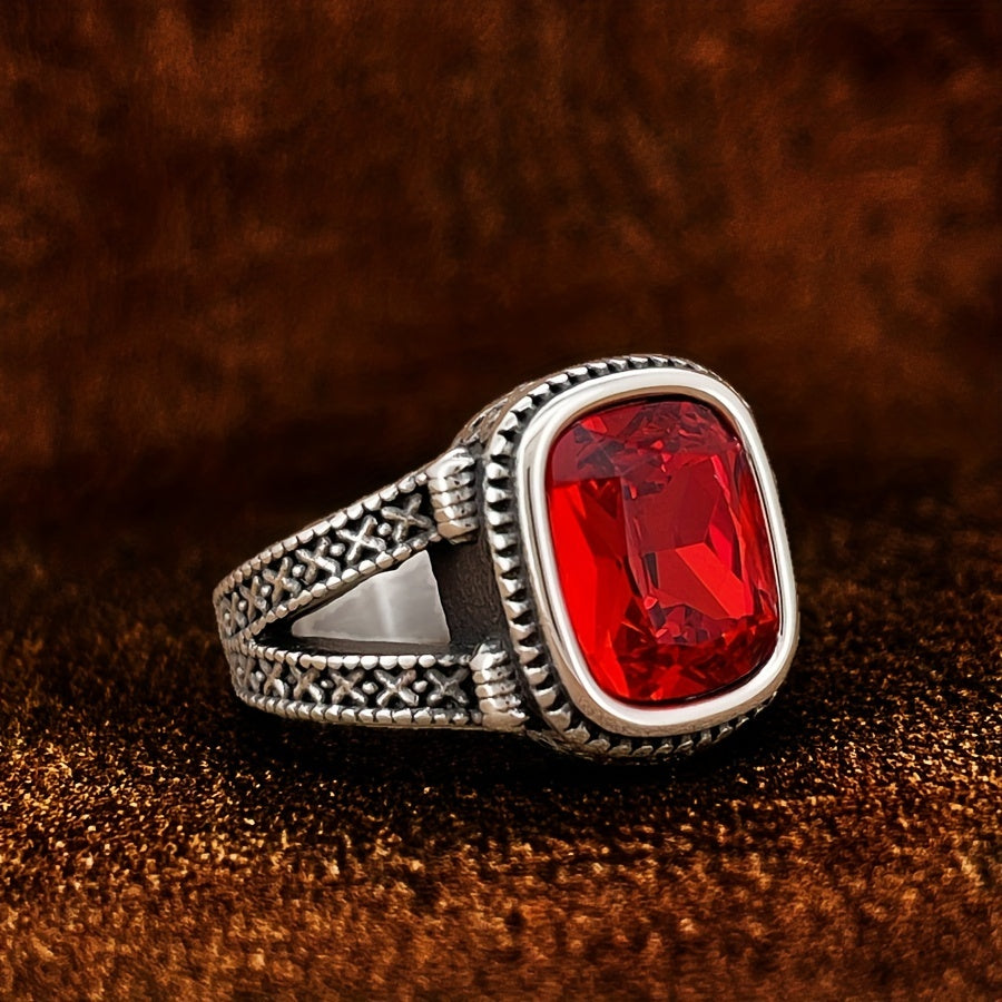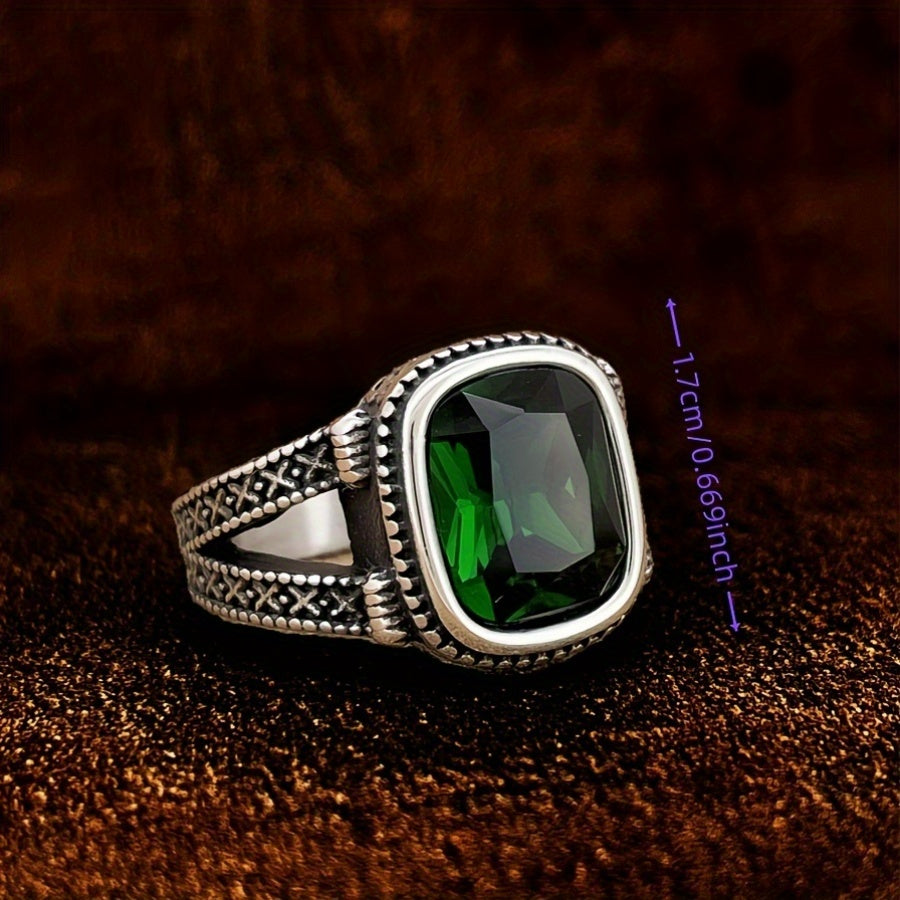 This vintage style unisex ring is made of stainless steel and features synthetic zirconia. Perfect for anniversaries and special occasions.