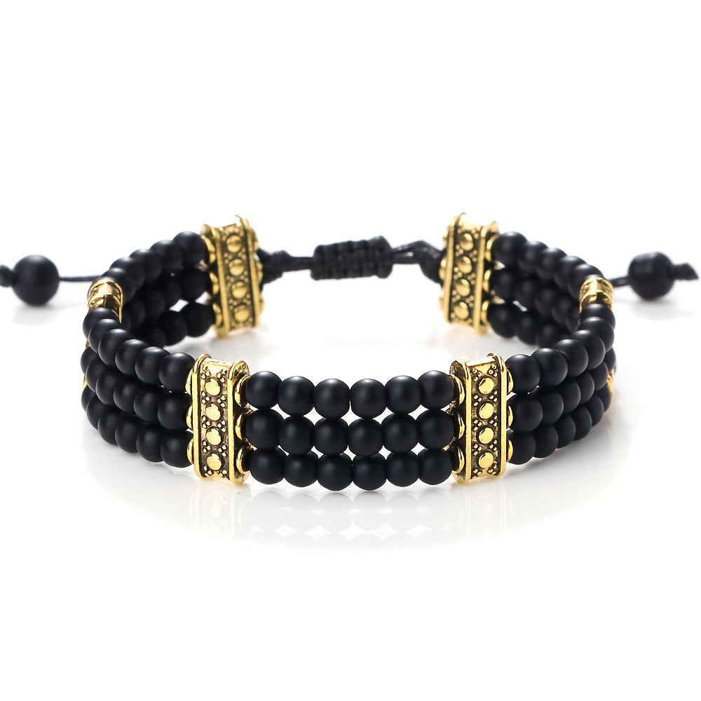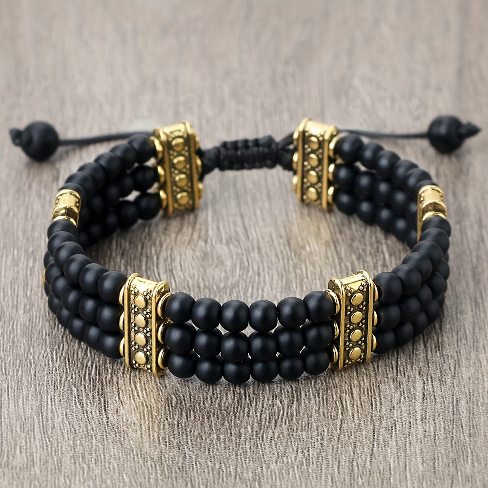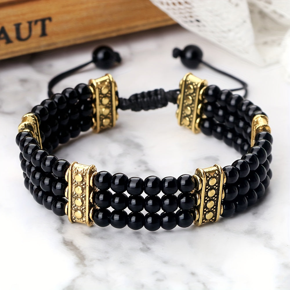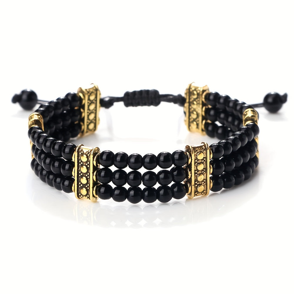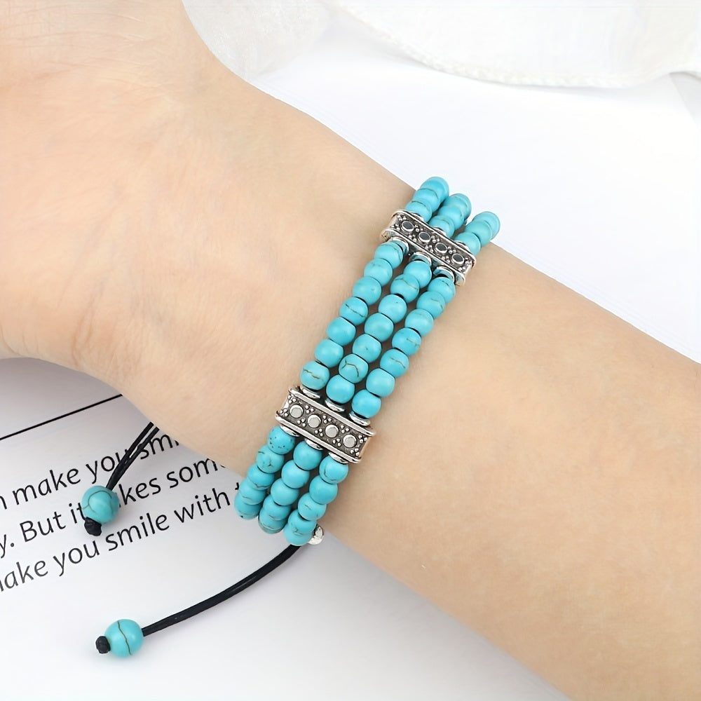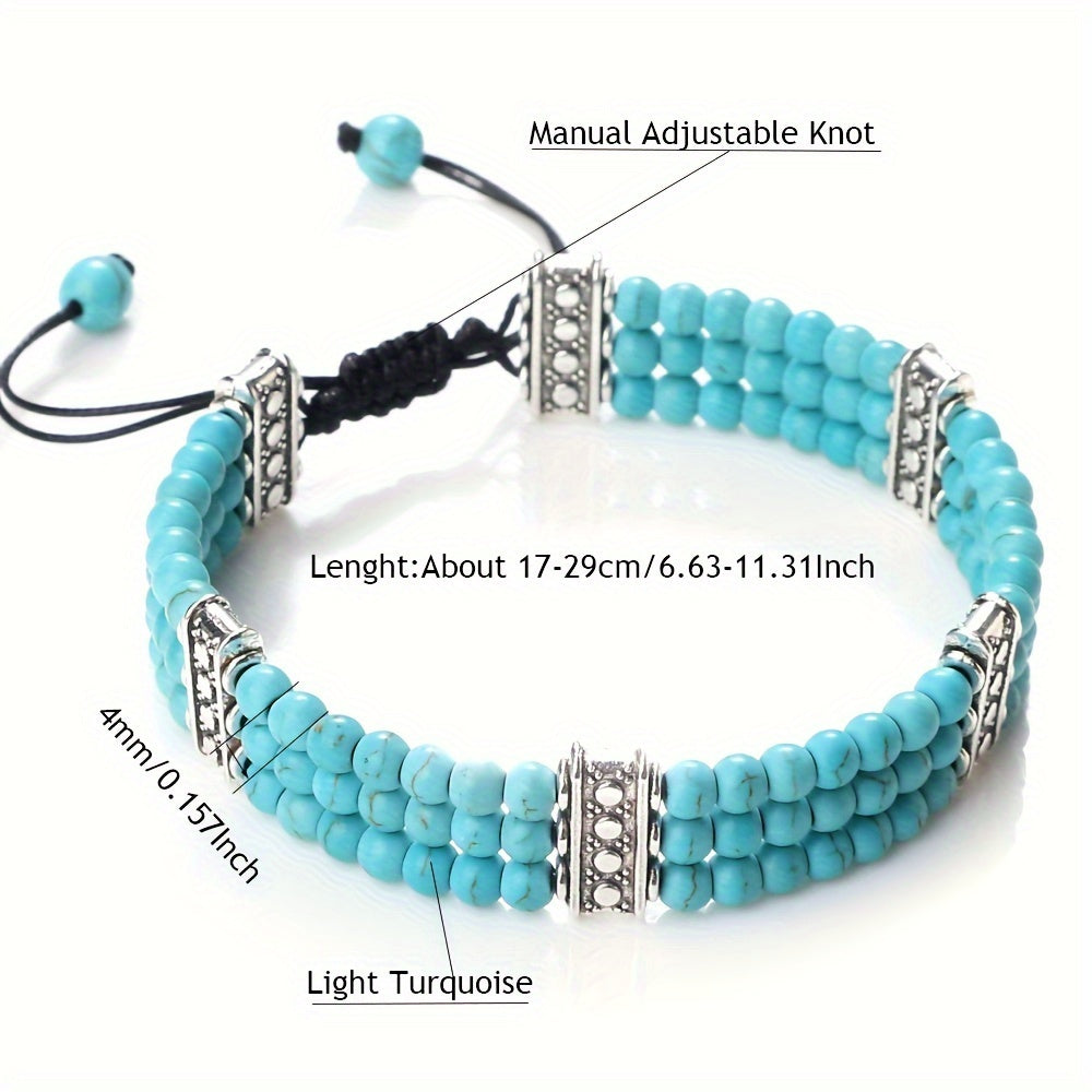This vintage three-row bracelet features natural turquoise stones and a woven design. Suitable for both men and women, this adjustable friendship bracelet makes a perfect gift for any occasion.