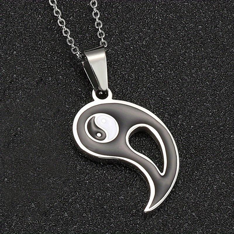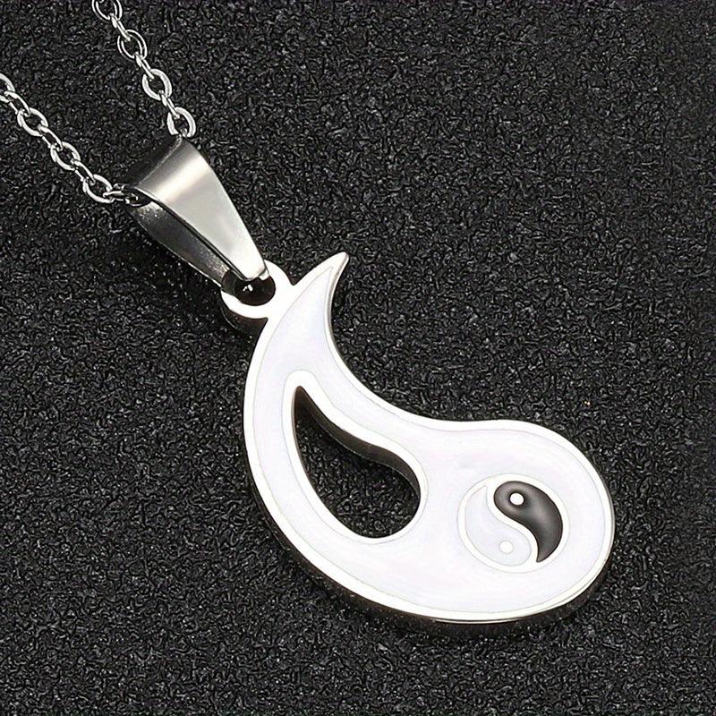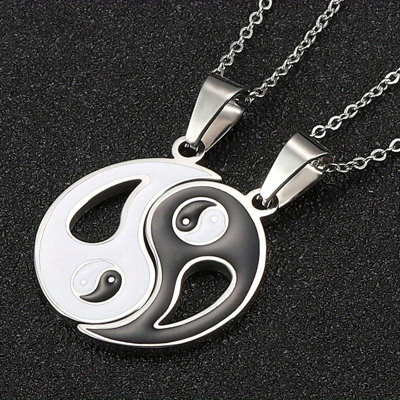 Yin Yang Puzzle Matching Pendant Necklace Couples Stainless Steel Enamel