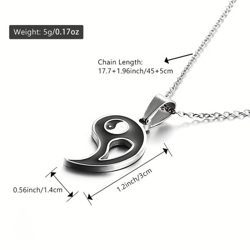 This set includes 2 puzzle matching pendant necklaces with Yin Yang design. Made of durable stainless steel with enamel finish, perfect for couples.