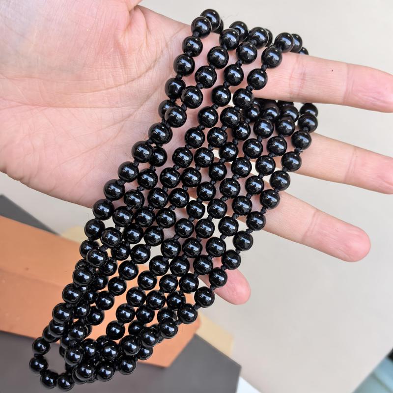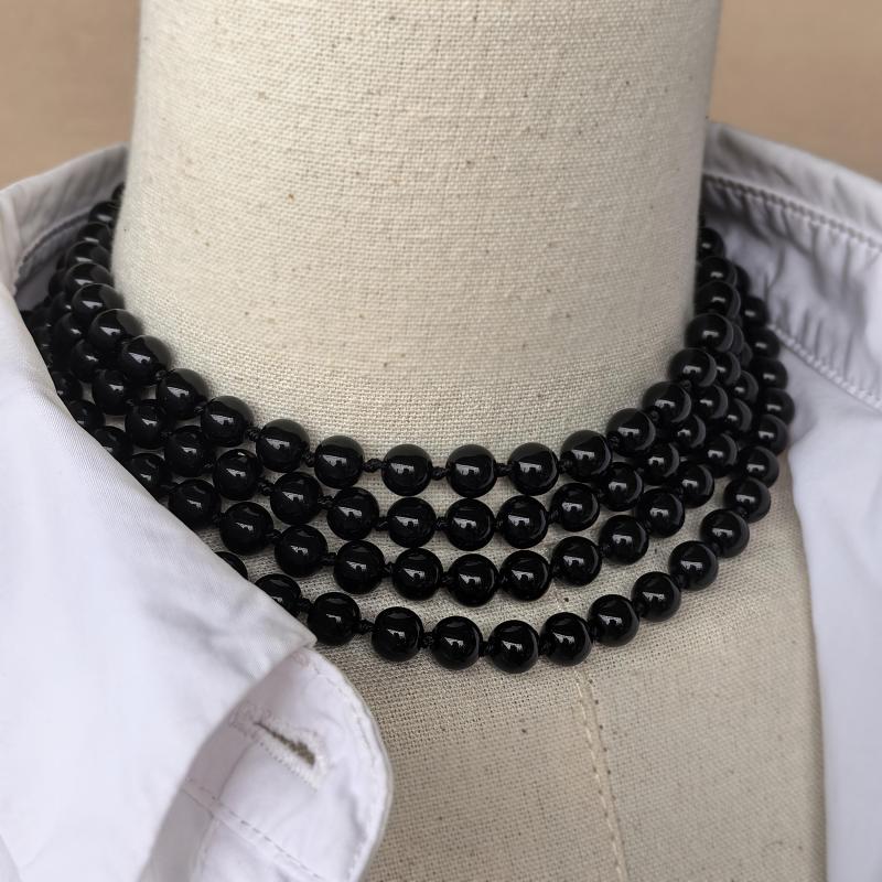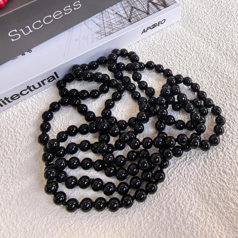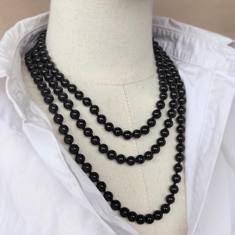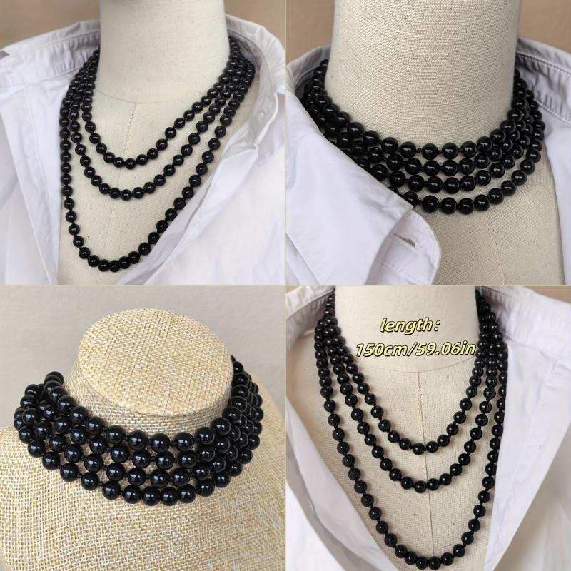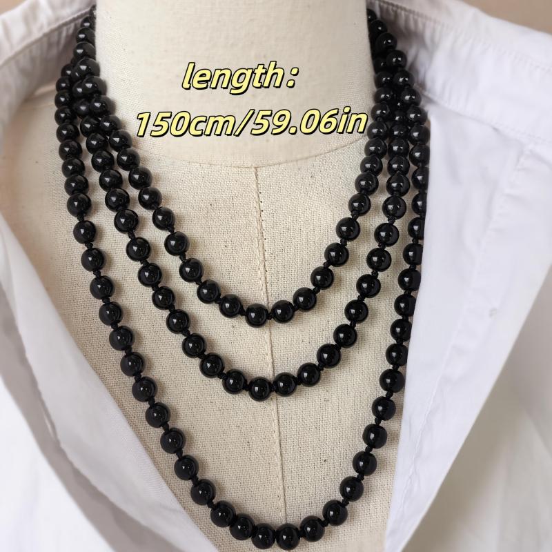 Elegant 1.5m long necklace with layers of 8mm round glass beads. Perfect for stage performances, weddings, and dress accessories.