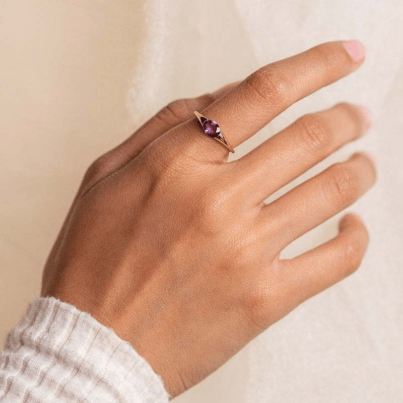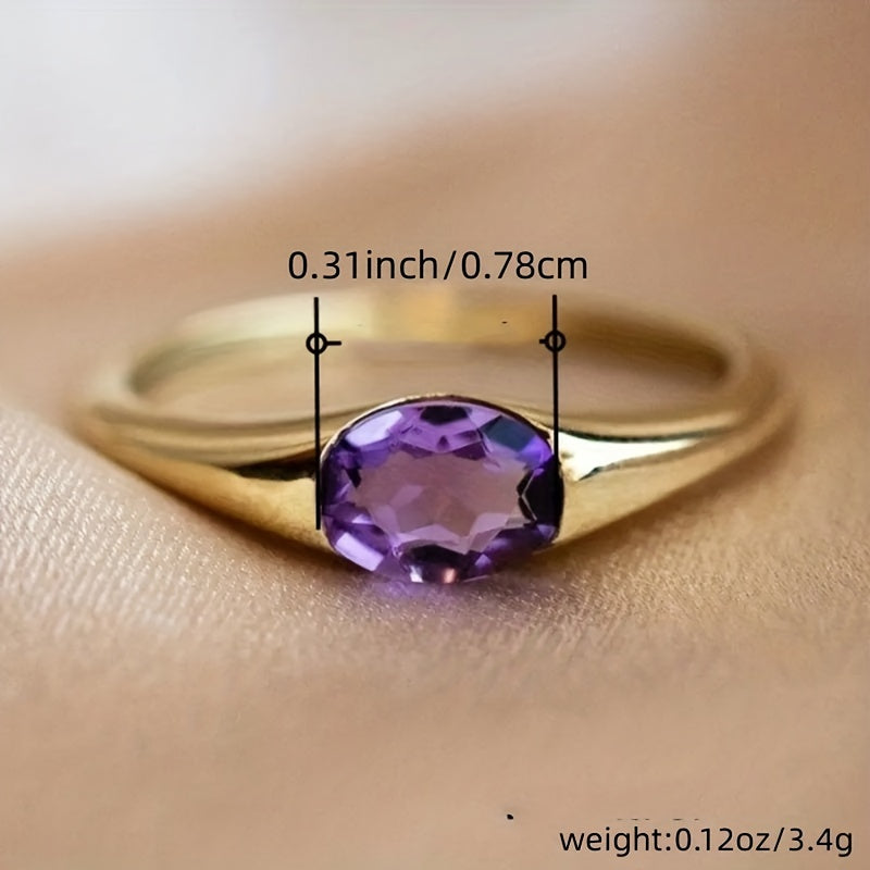 Elegant 18K plated ring featuring a stunning purple zircon, perfect for women who love unique jewelry. Adds a touch of glamour to any outfit.