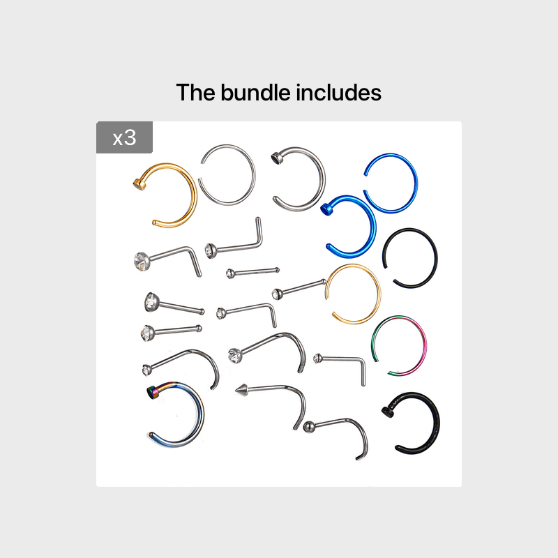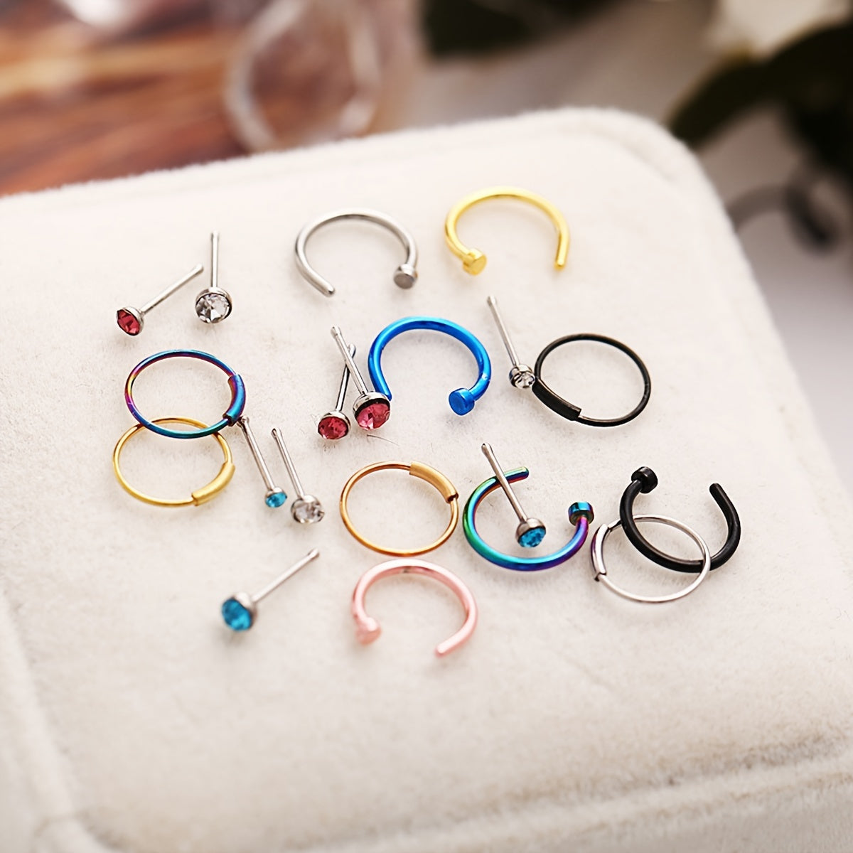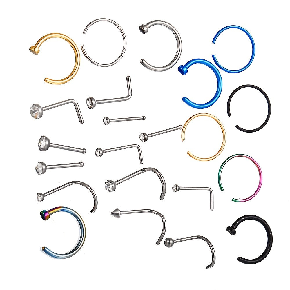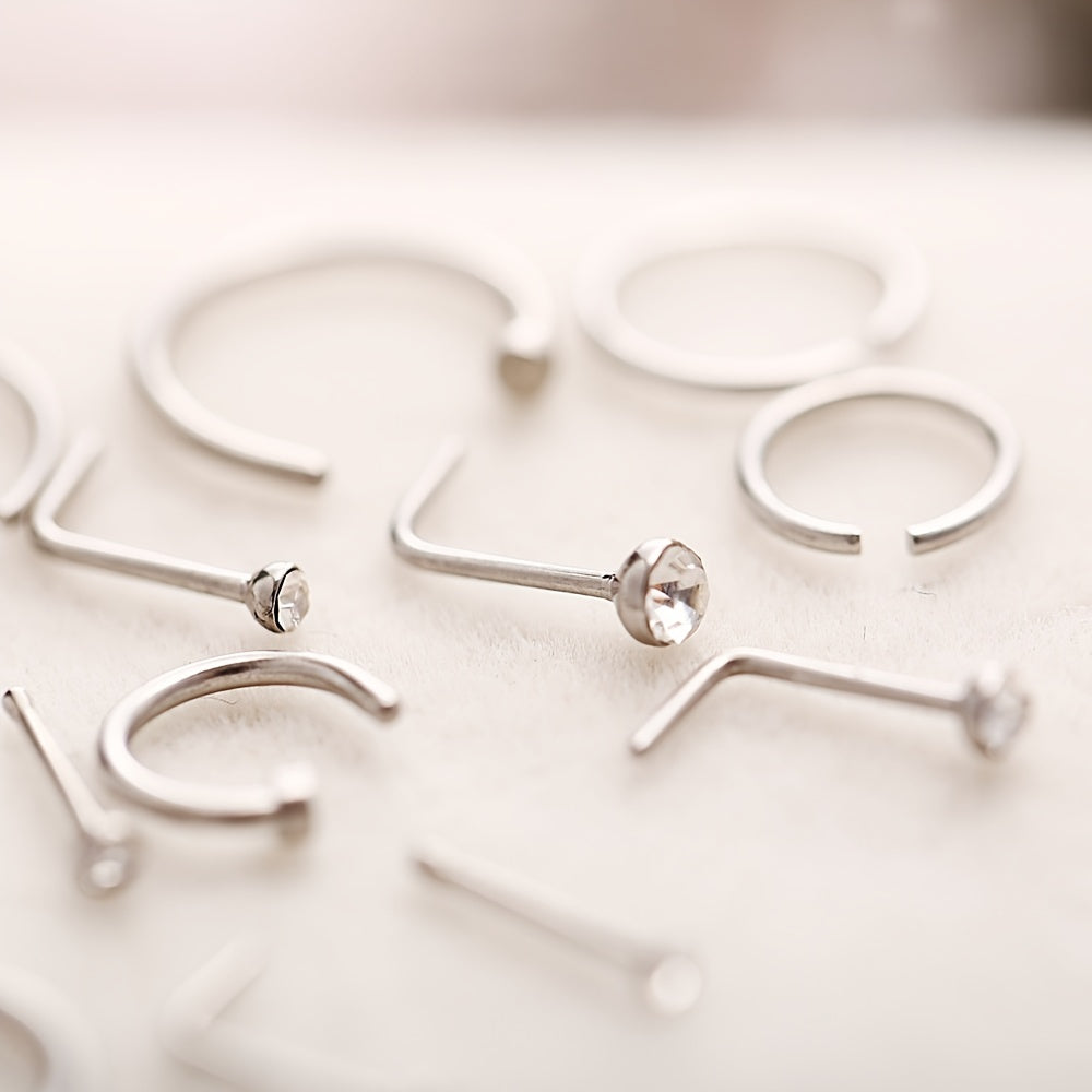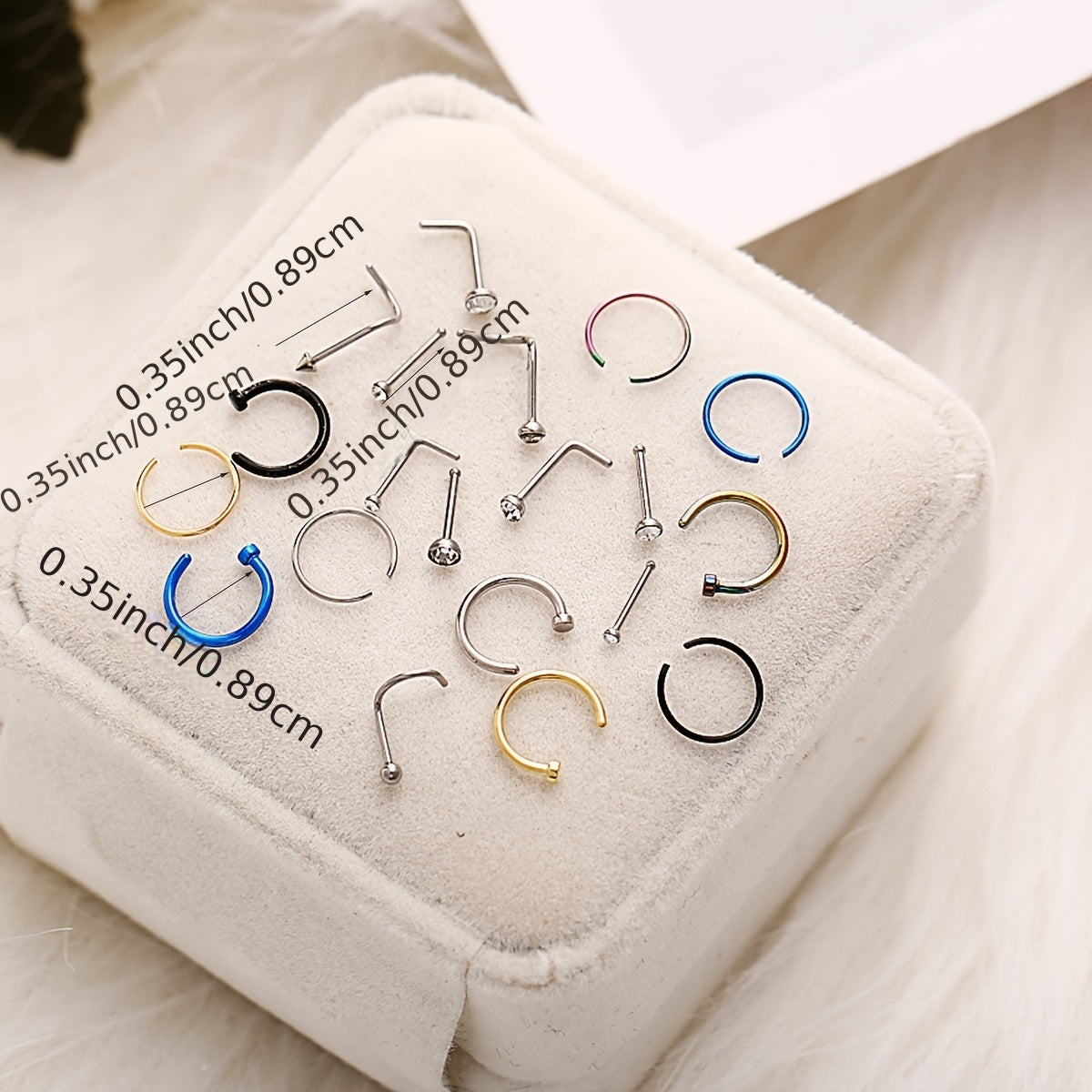 Add a touch of style to your look with this set of 22 mixed stainless steel nasal studs. These nose rings are perfect for women who love body piercing jewelry.
