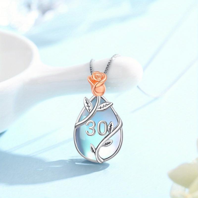Celebrate her 30th birthday with this elegant sterling silver pendant necklace featuring a moonstone gemstone. Perfect for wives, mothers, Christmas or anniversary gifts.