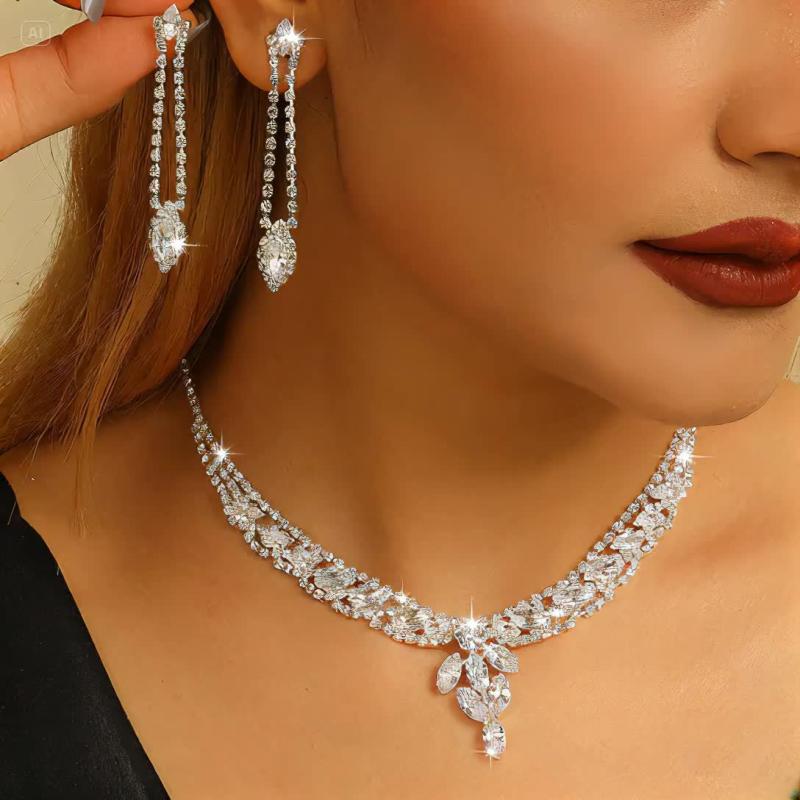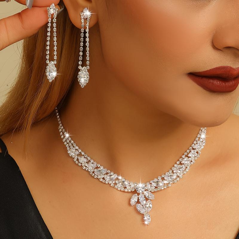 Complete your look with this fashionable and versatile jewelry set. Perfect for banquets, weddings, or everyday wear.