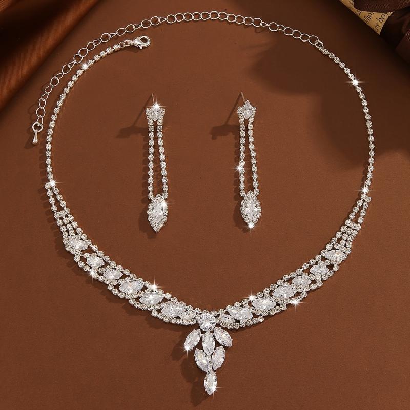 3pcs Necklace Set Earrings Jewelry Set Banquet Dress Chain