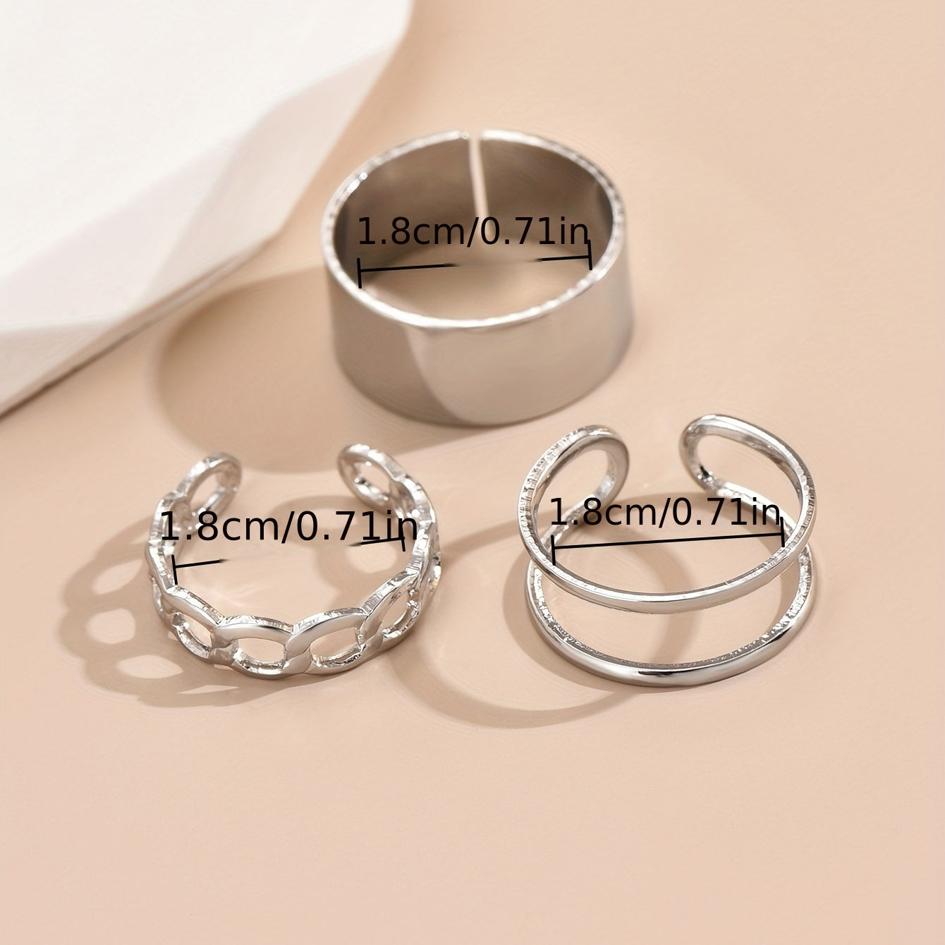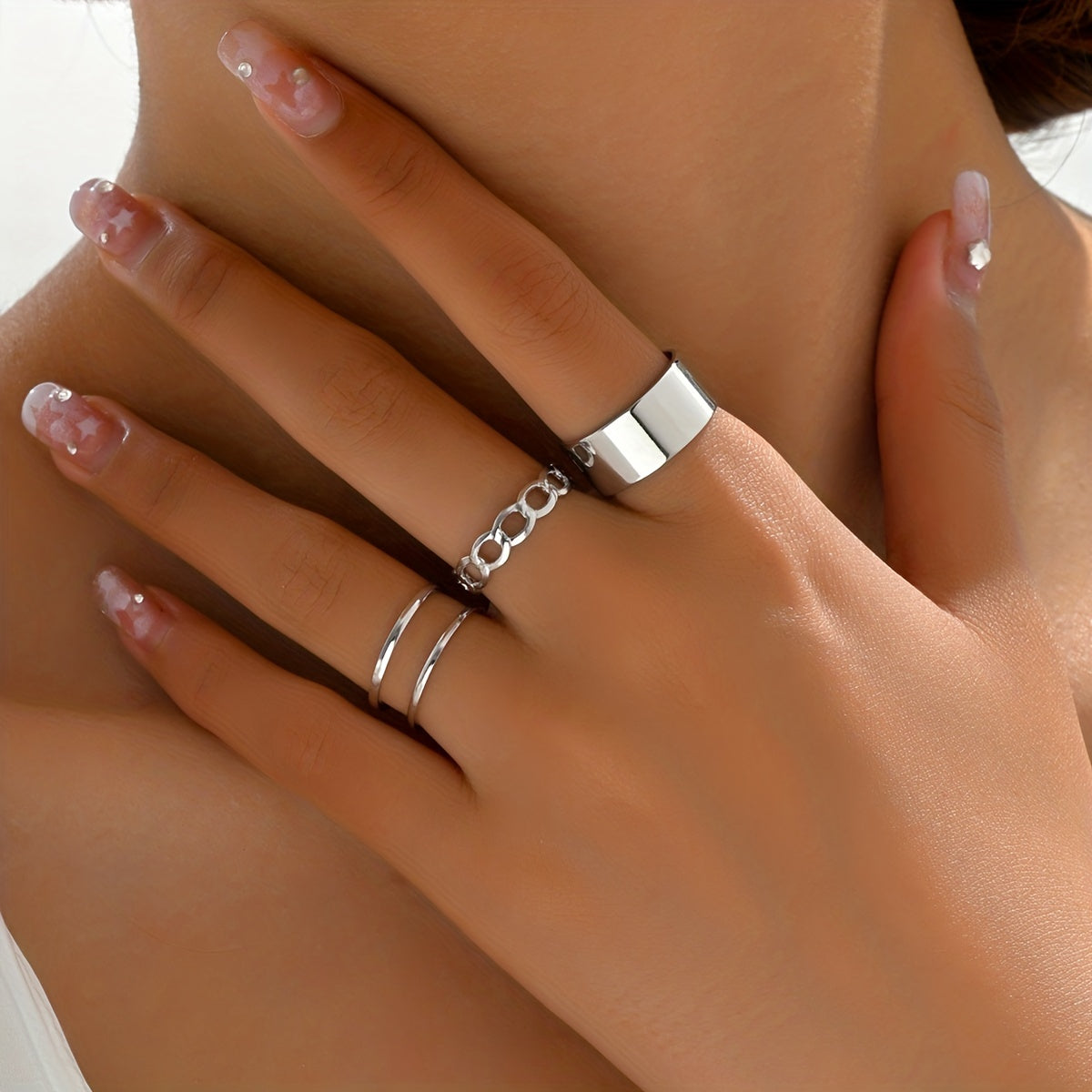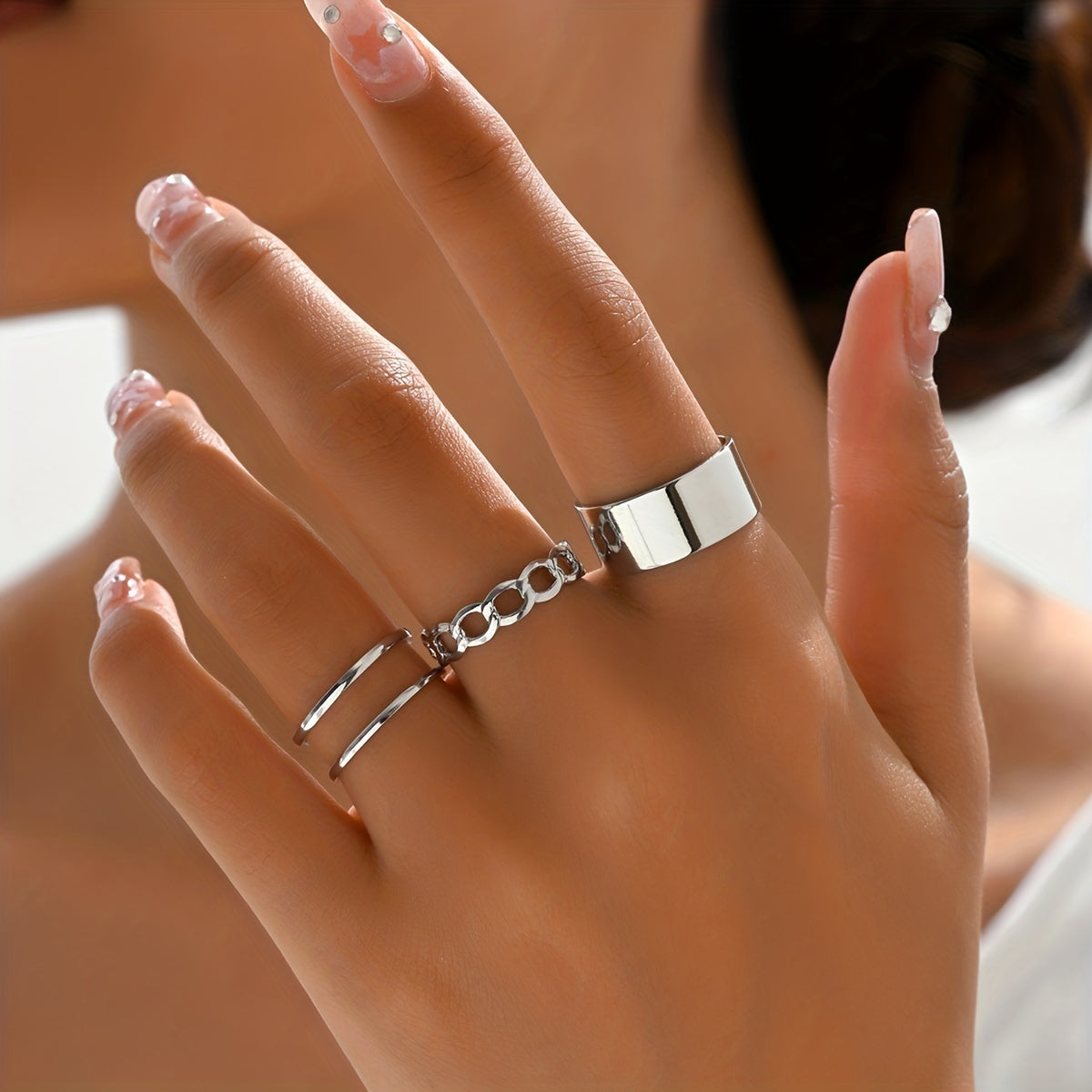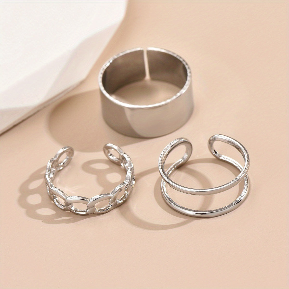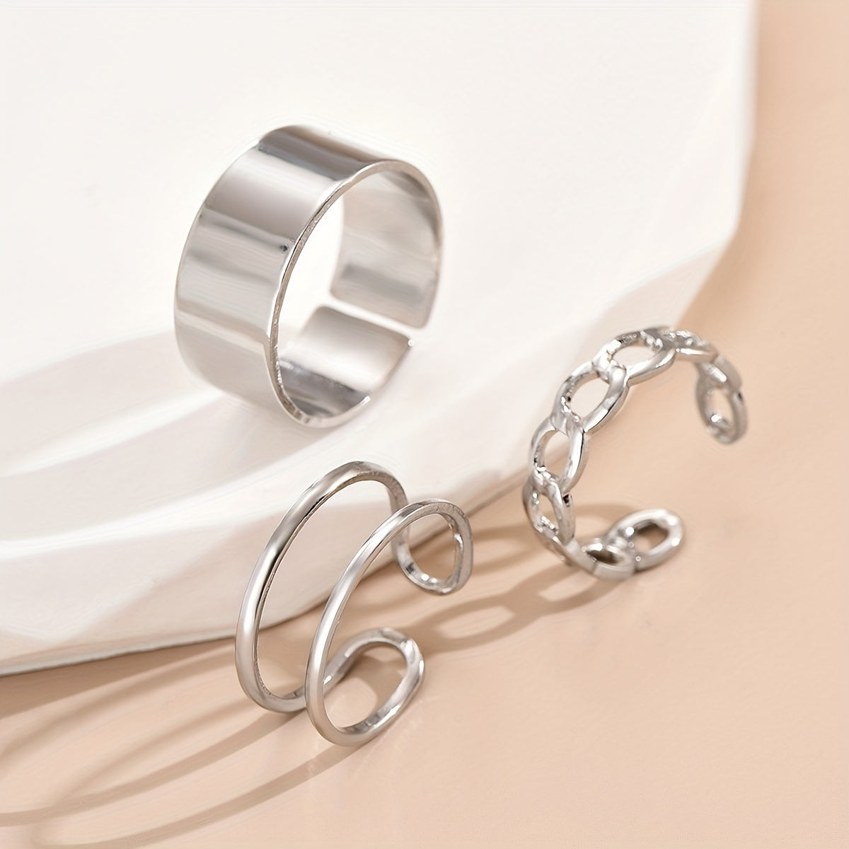 • Set of 3 normcore rings with chain pattern design
