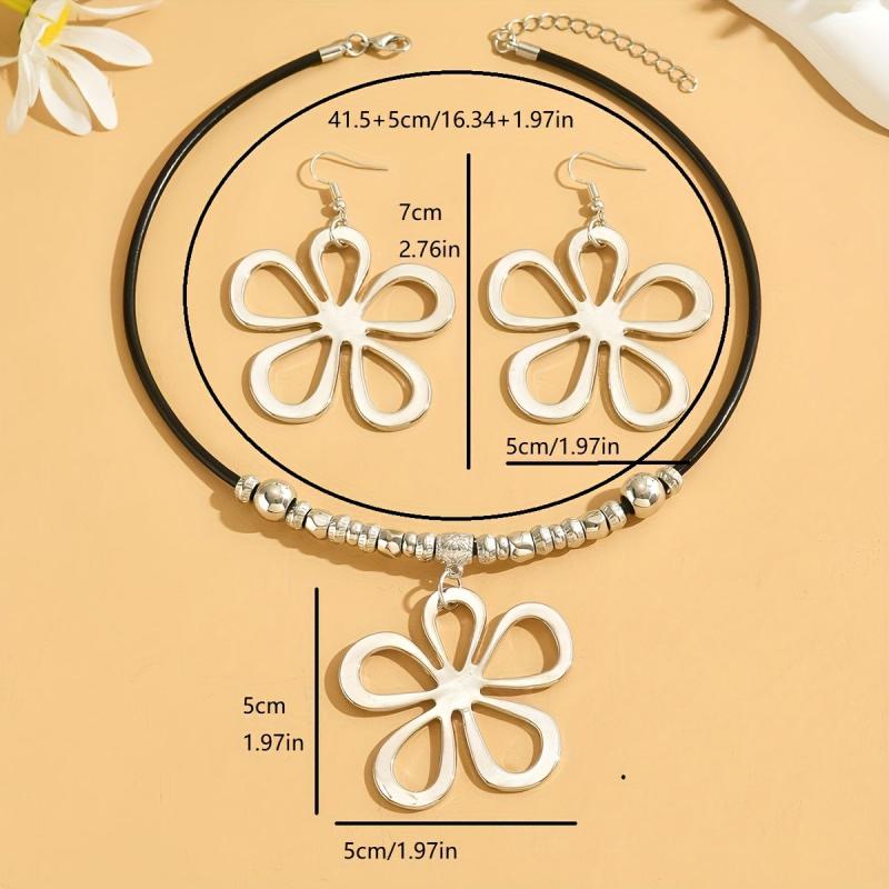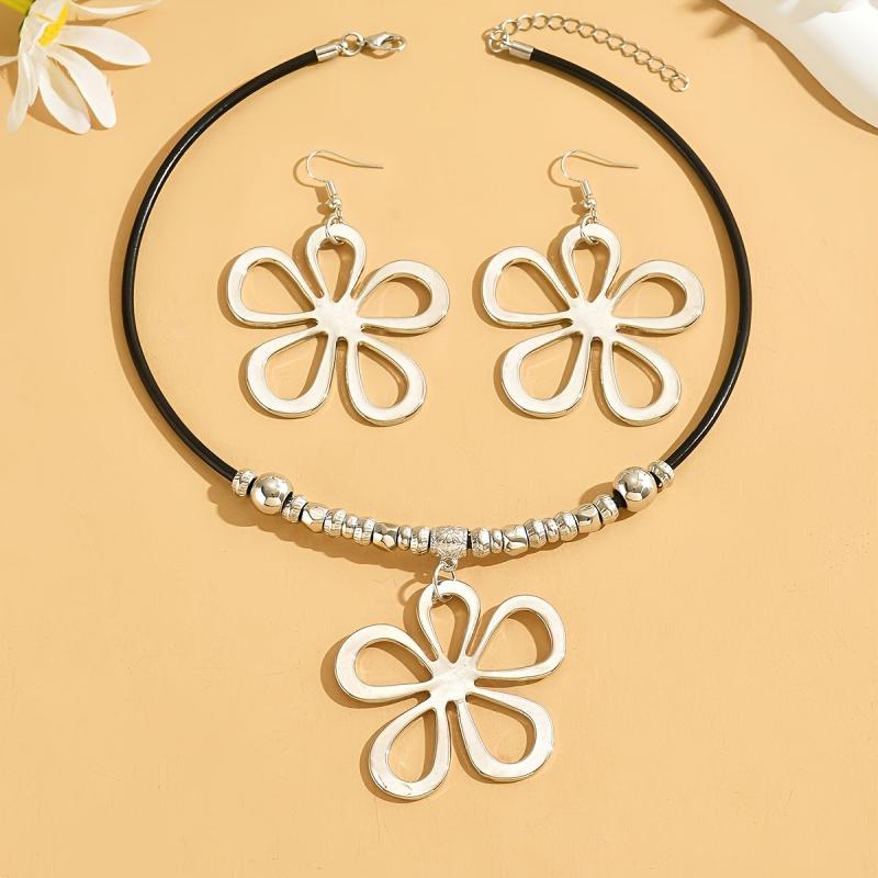 3pcs Women's Rope Geometric Flower Necklace Set Matching Dangle Earrings