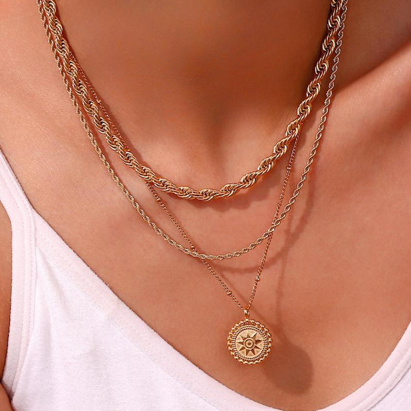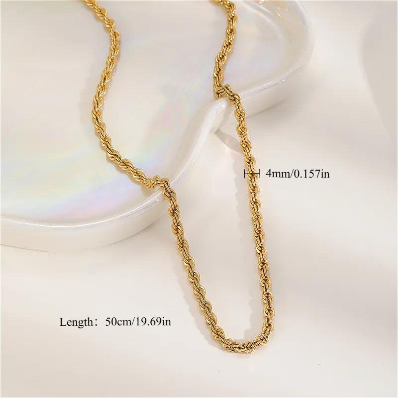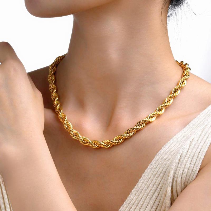 Elevate your style with this hip hop style chain necklace that is perfect for all seasons. Made of stainless steel with a golden plated twist rope design, it adds a touch of glam to your everyday look.