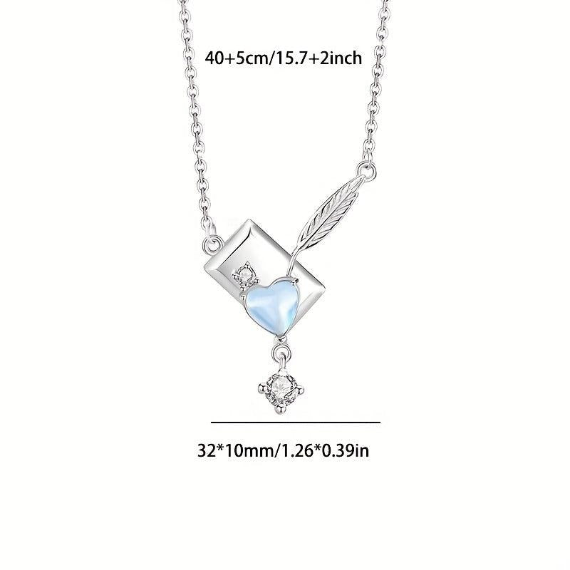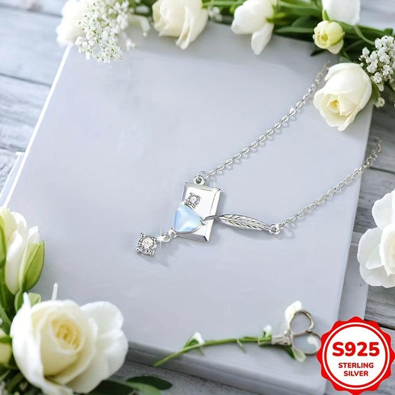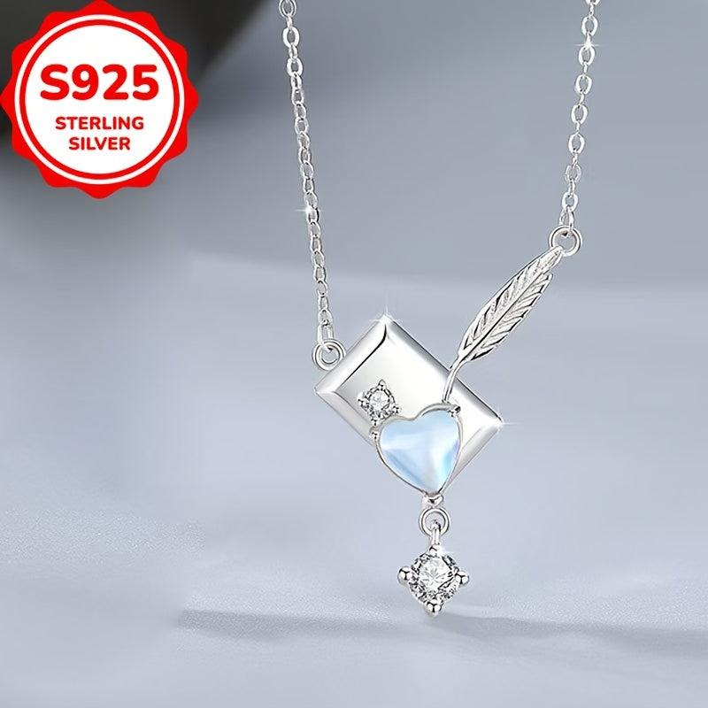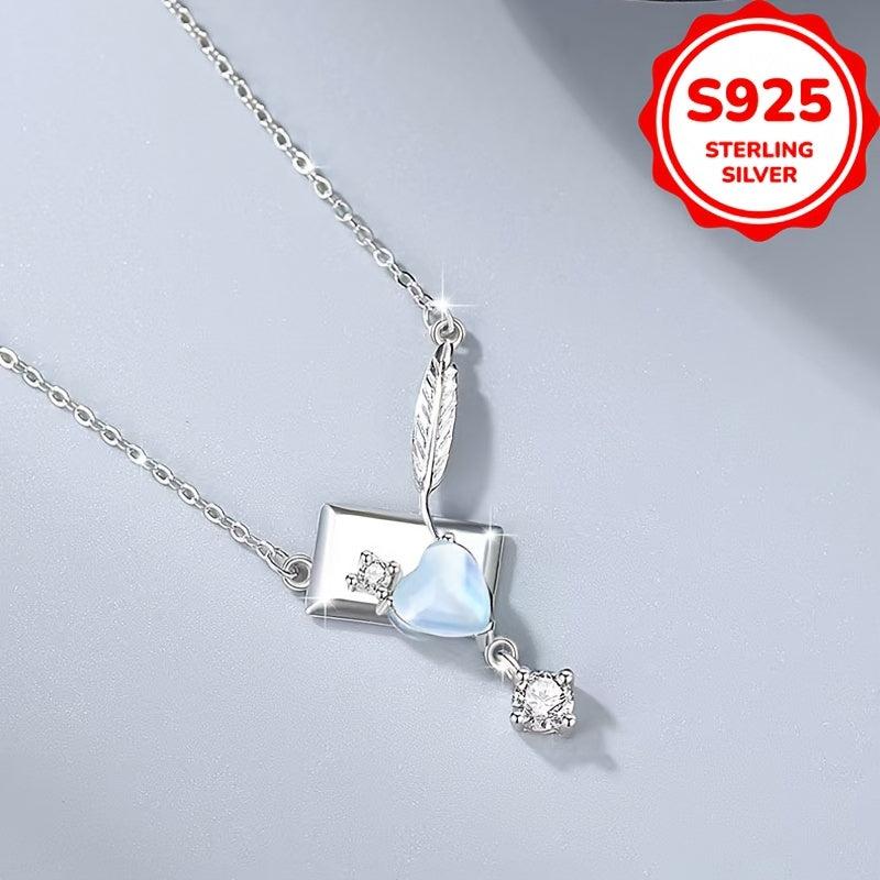 This unique necklace features a moonstone pendant in the shape of an envelope, adorned with zirconia and feather tassels. Made with s925 pure silver, this necklace is lightweight and perfect for daily wear or parties.