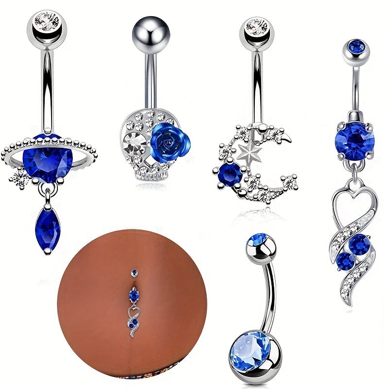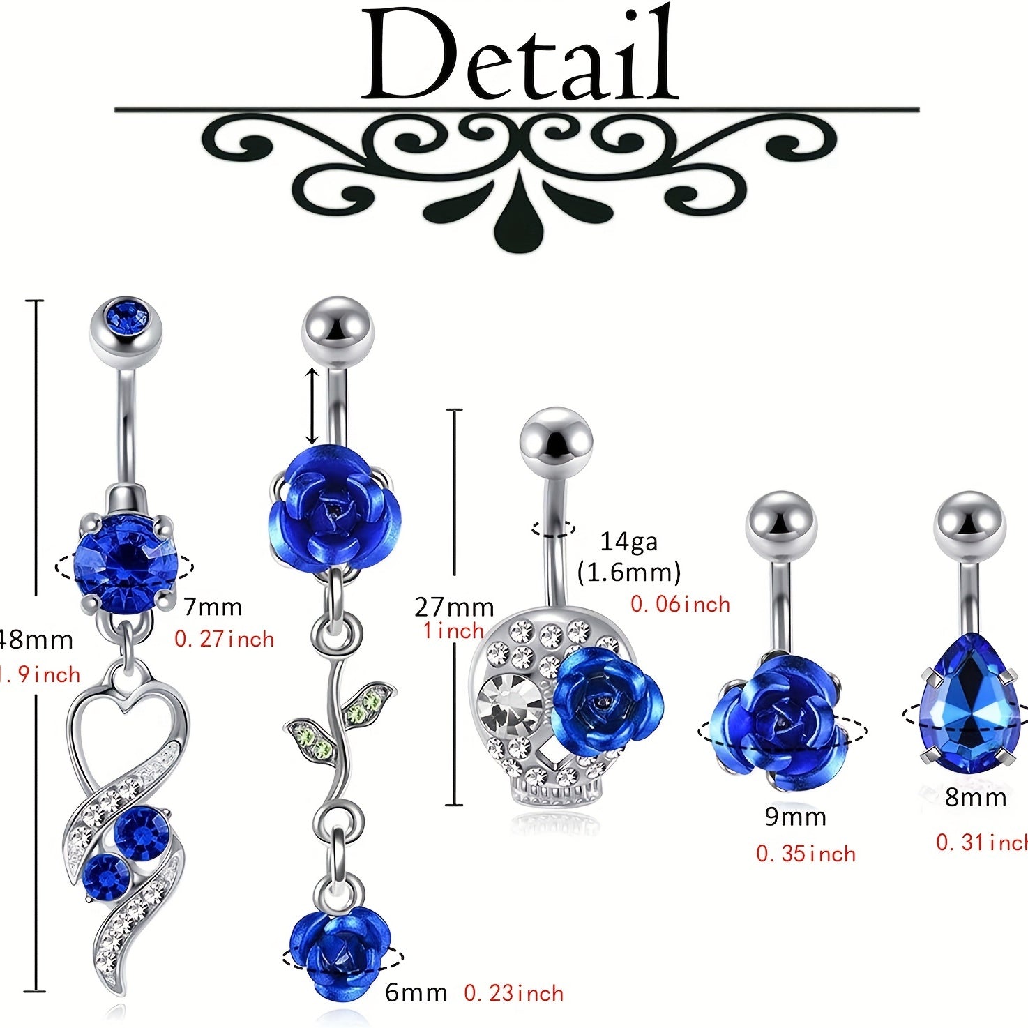 Enhance your belly button jewelry collection with this 5-piece set featuring 14G stainless steel belly rings. Each ring boasts a unique dangle bar design to add a touch of elegance and style.