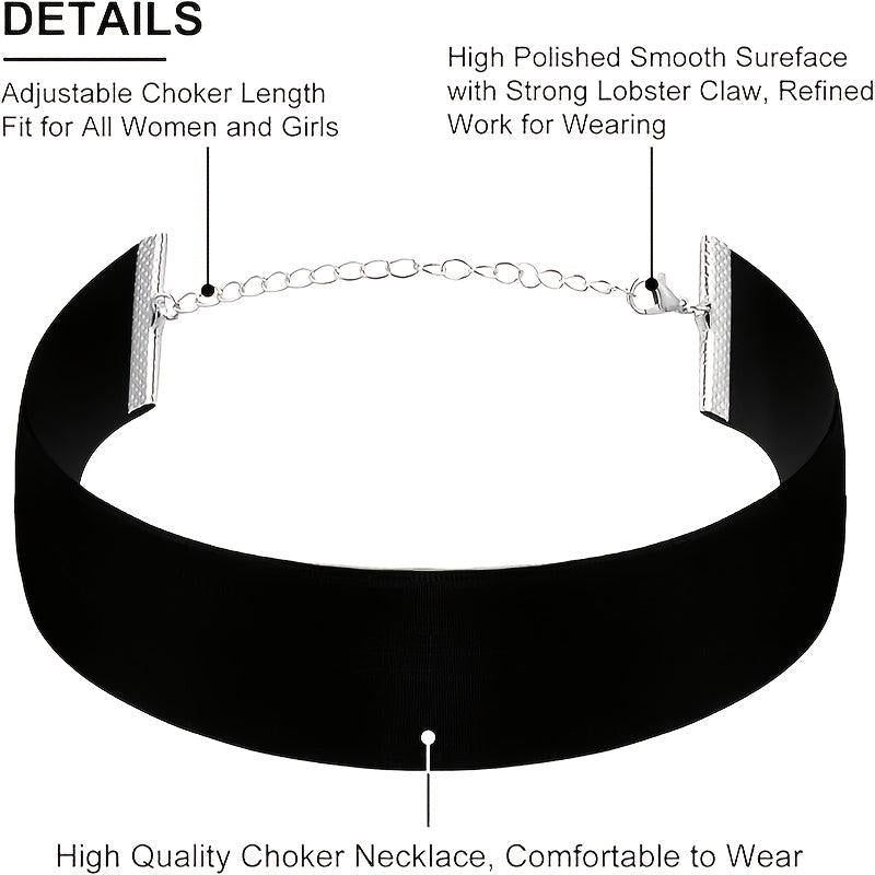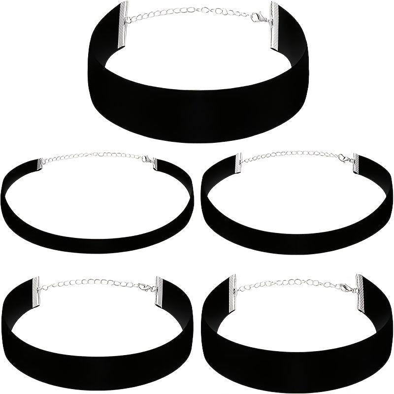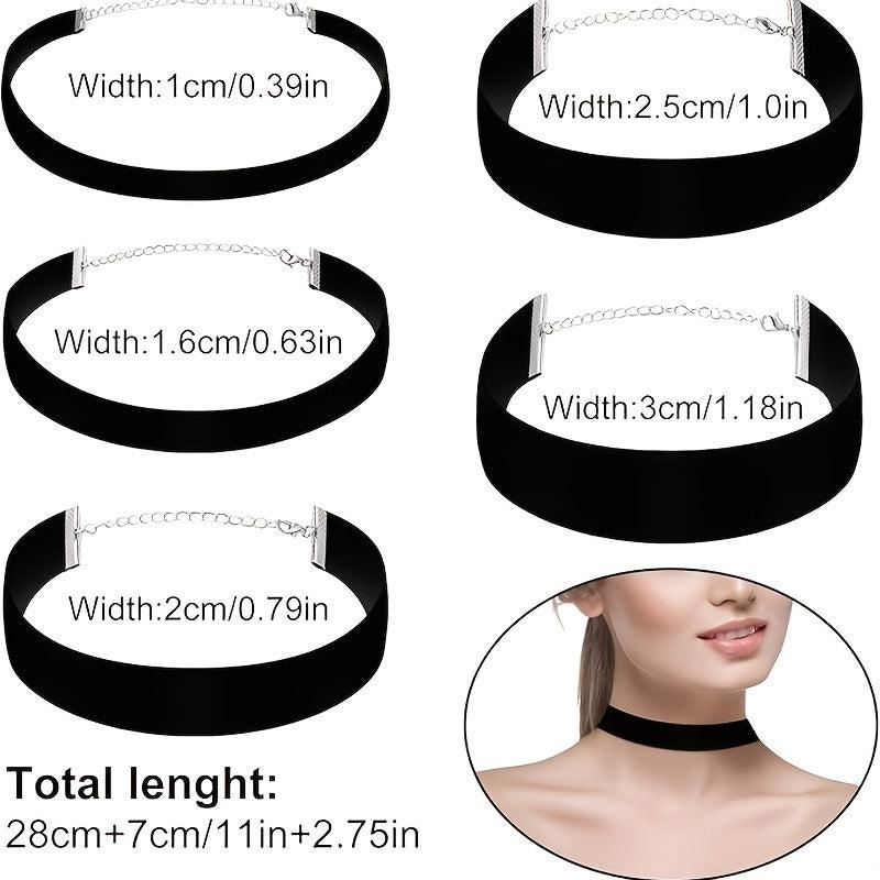 This set includes 5 classic choker necklaces in various sizes, featuring a wide soft collar design with delicate chain. Perfect for adding a touch of style to any outfit.