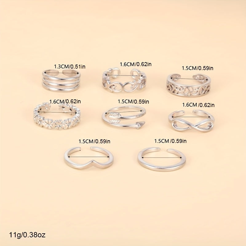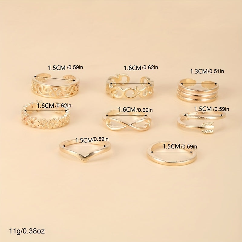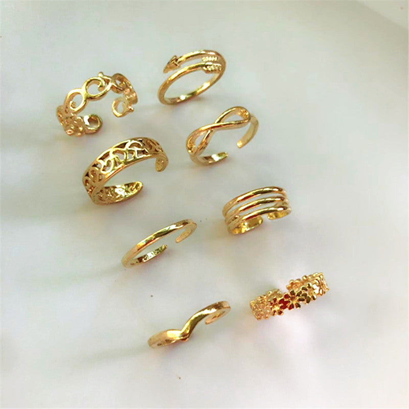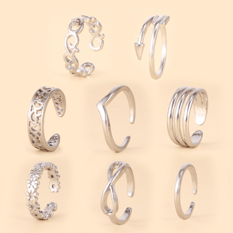 Enhance your summer beach look with this set of 8 boho-style toe rings. These adjustable foot rings are perfect for women and girls to add a touch of flair to their outfit.