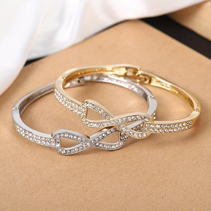 8 Shaped Cuff Bangle Bracelet Inlaid Synthetic Gems All match Jewelry