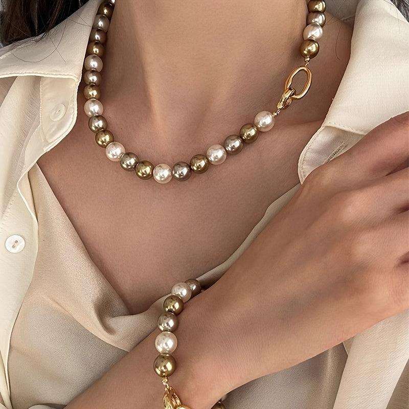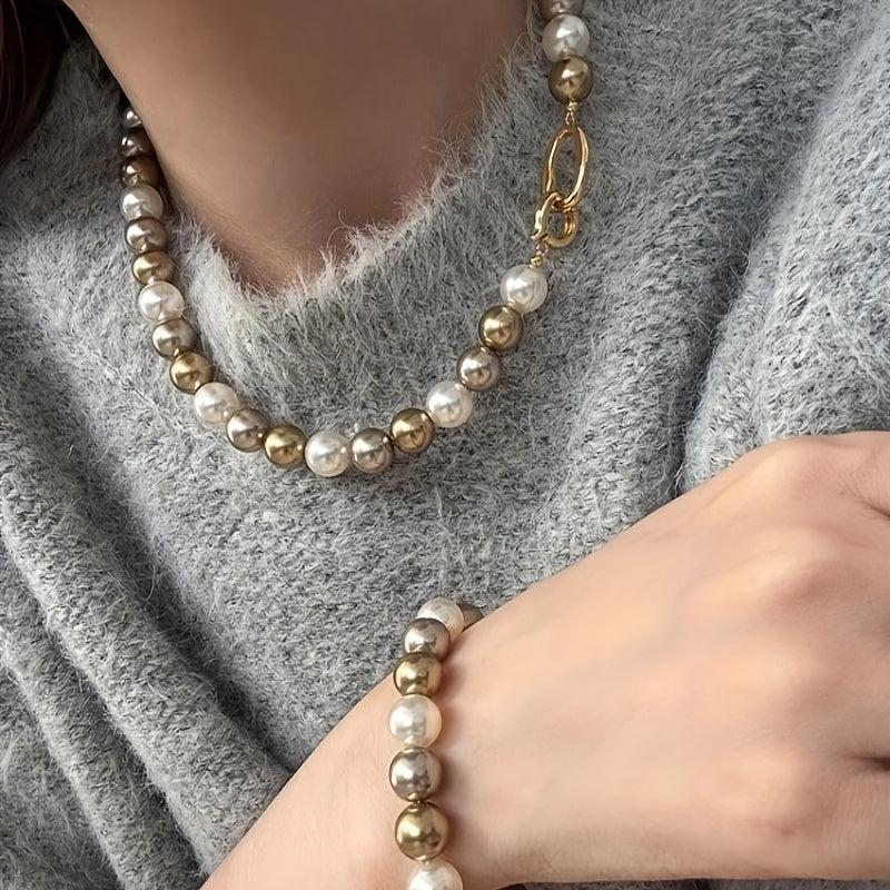 Ideal for everyday wear or gifting, this set includes a necklace and bracelet with 8mm beads in mixed light colors.