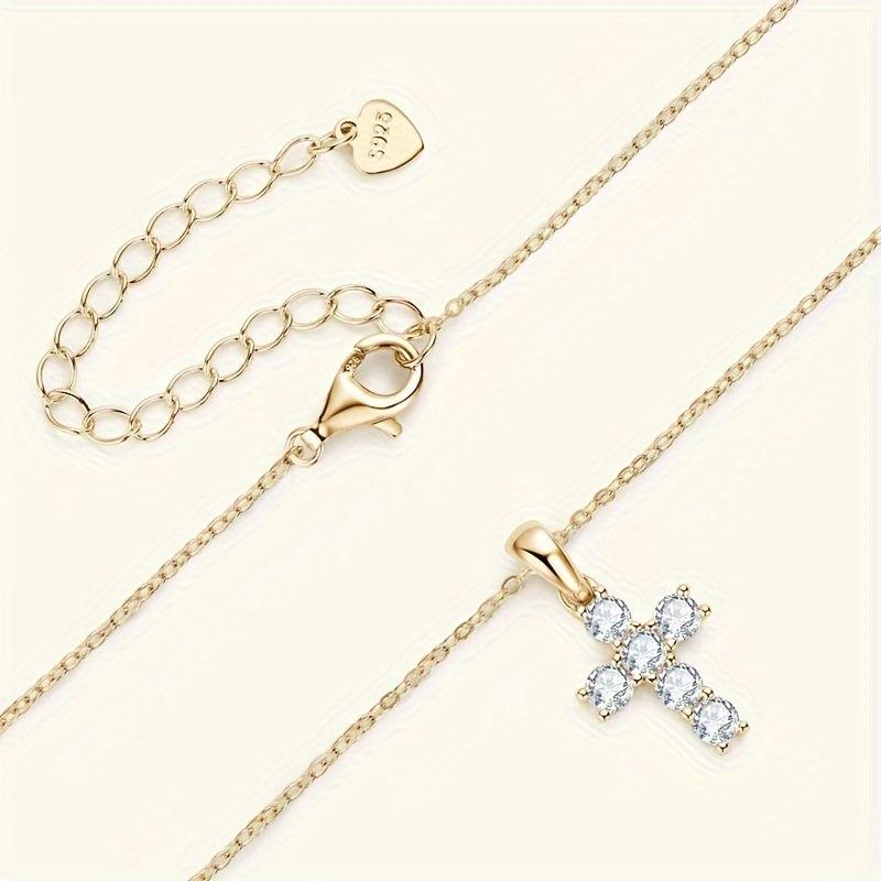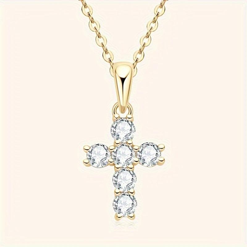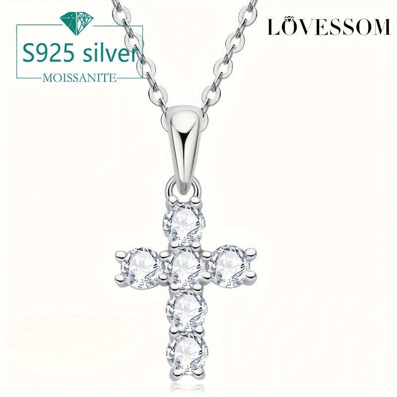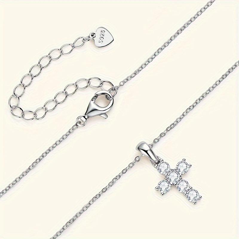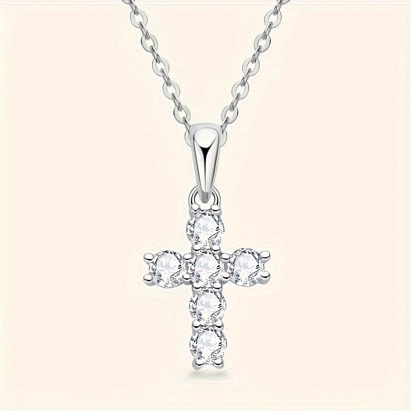 This stunning cross necklace is crafted from 925 silver and features a 0.6 carat moissanite stone. It exudes elegance and sophistication, making it the perfect accessory for any outfit.