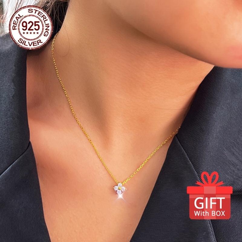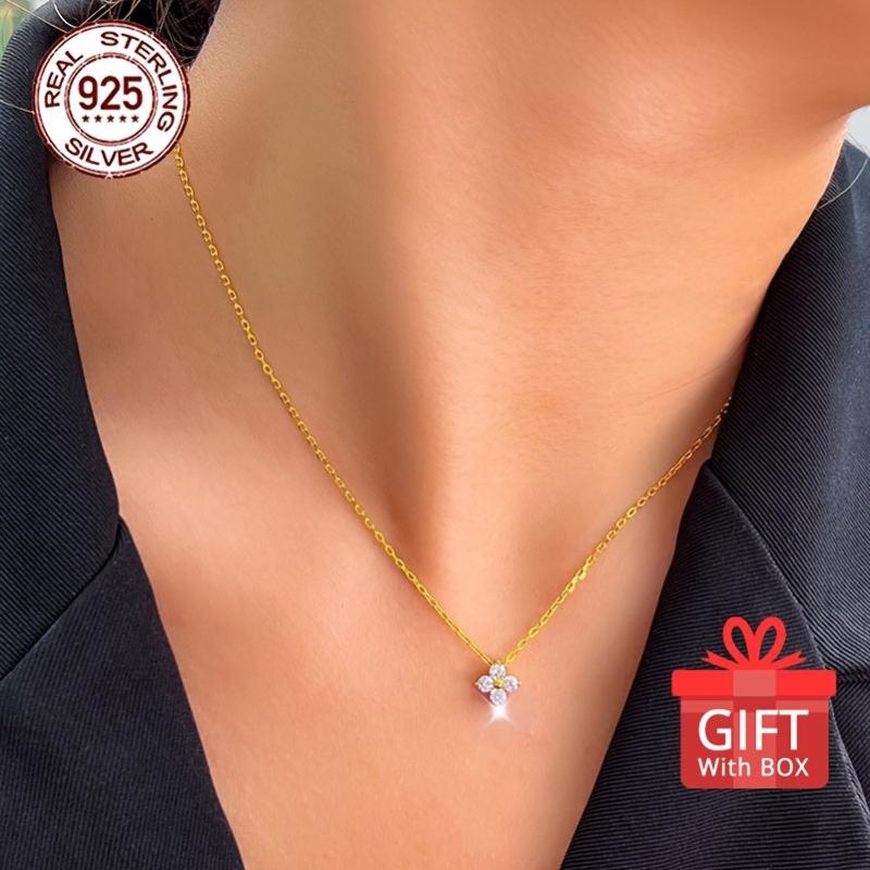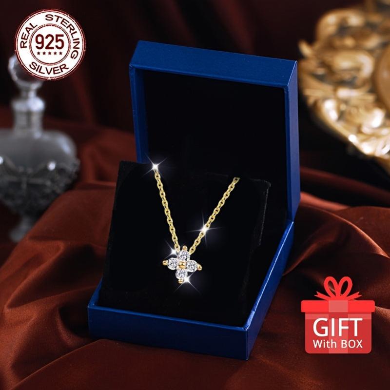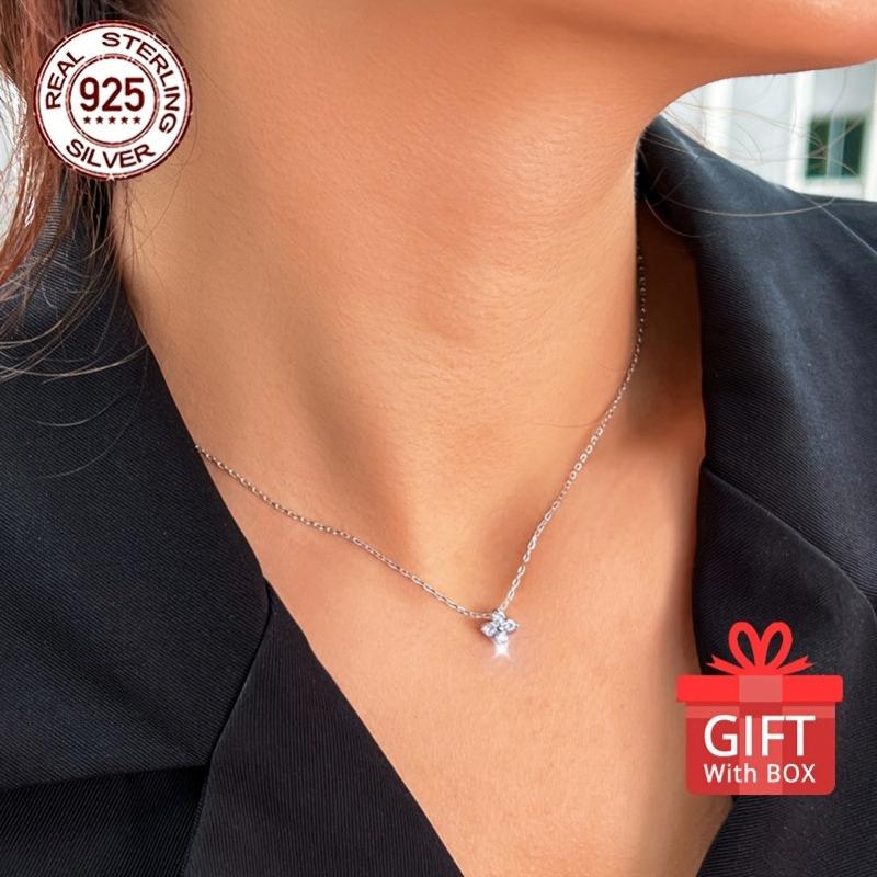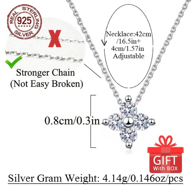 This charming necklace features a four-leaf clover pendant made of synthetic zirconia set in 925 sterling silver. Hypoallergenic and perfect for women who love romantic jewelry.
