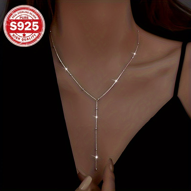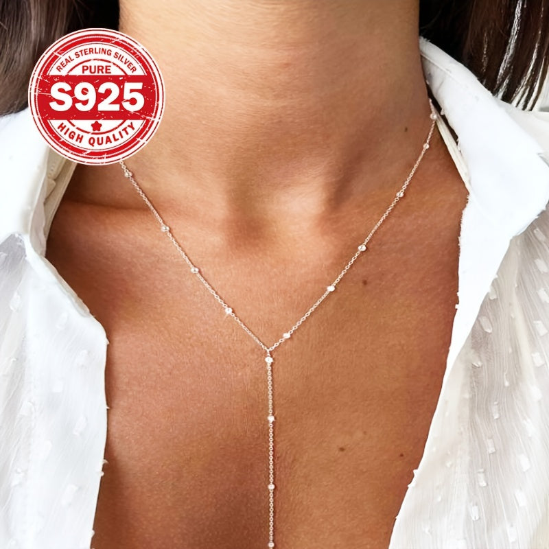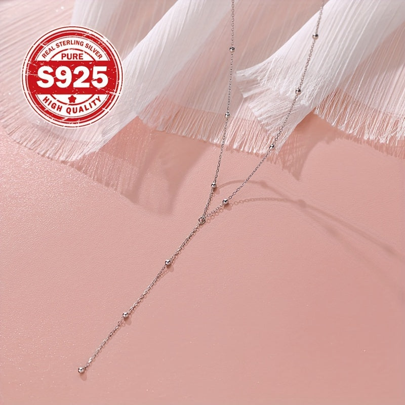 Elegant 925 silver necklace with round bead tassels. Ideal for daily wear, perfect as a gift for Thanksgiving or Christmas.