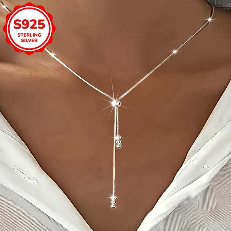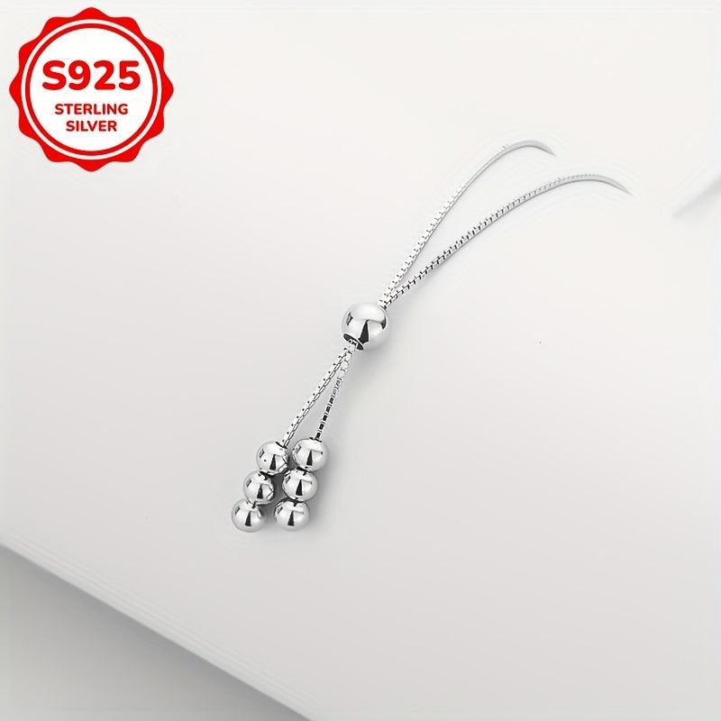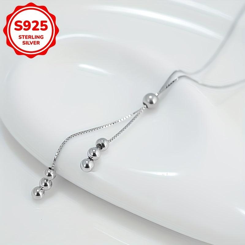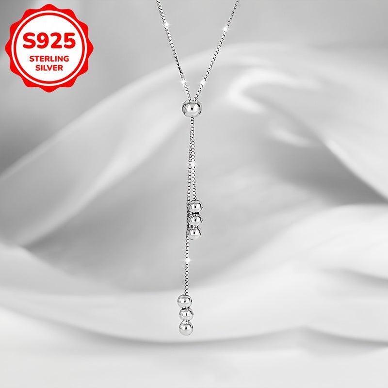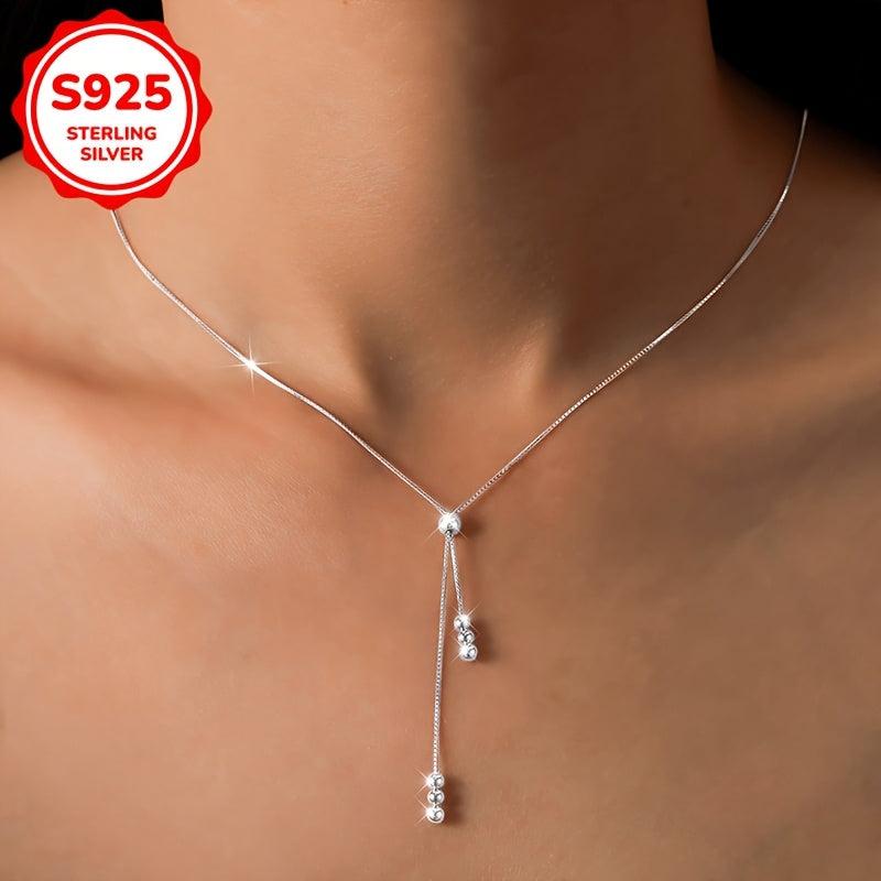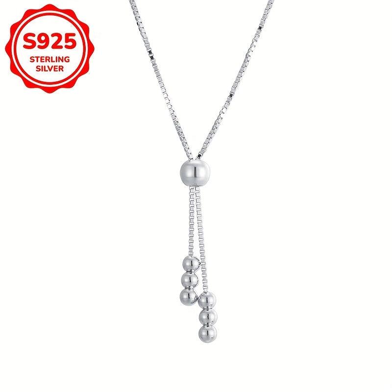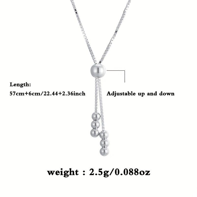 This stylish women's necklace features round beads and a tassel pull, crafted from 925 silver and weighing 2.5g. Ideal for everyday wear and as a holiday gift.