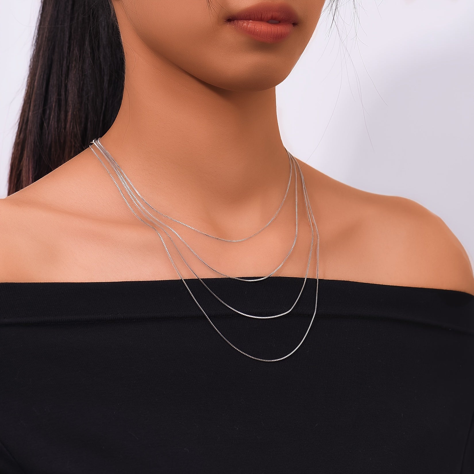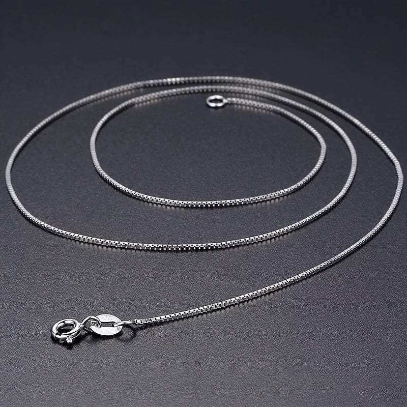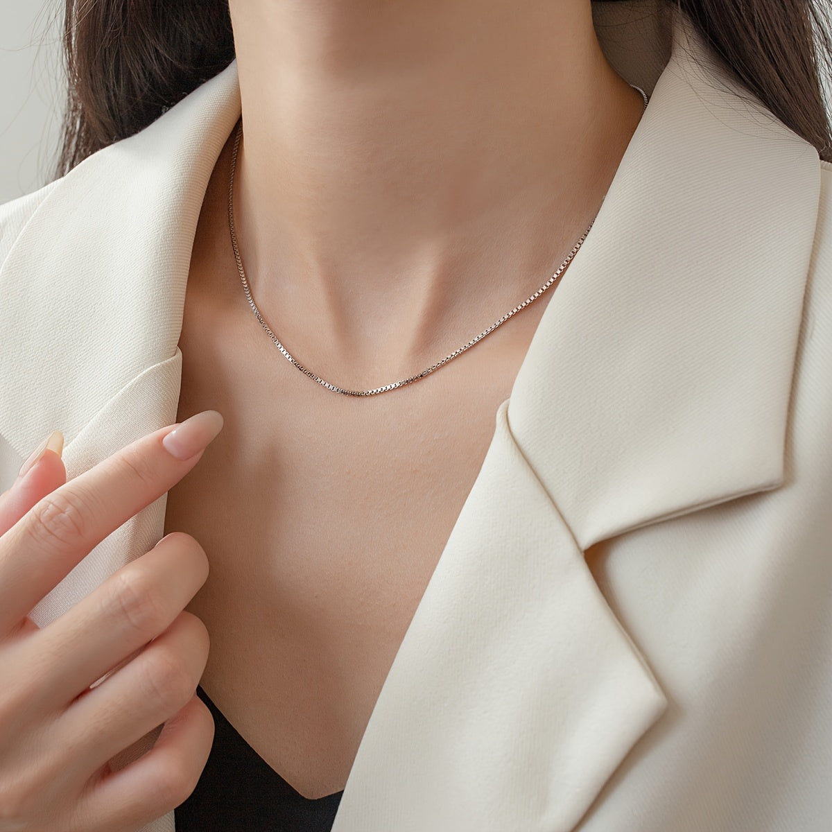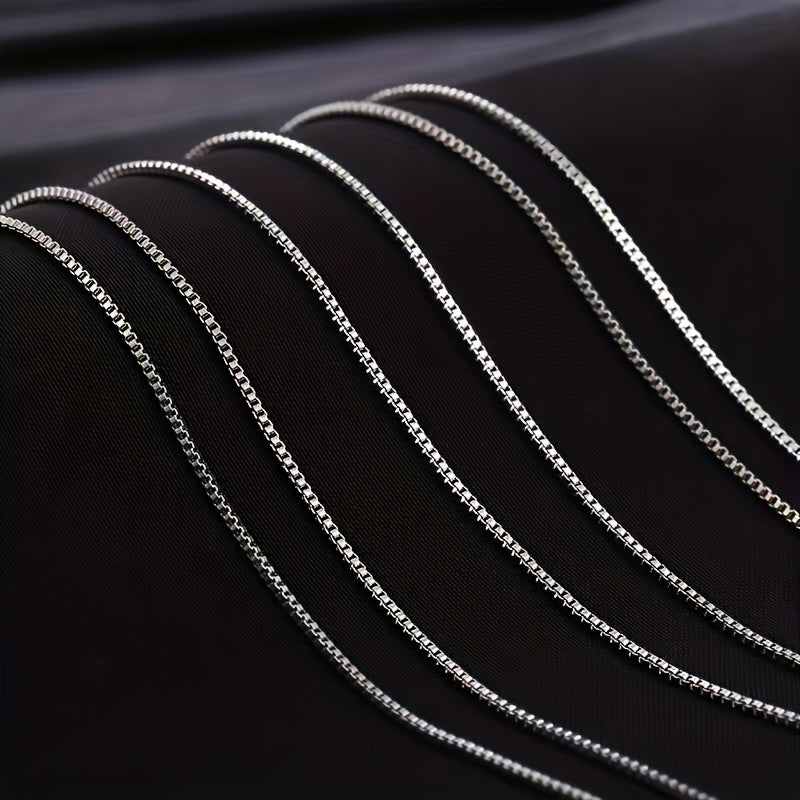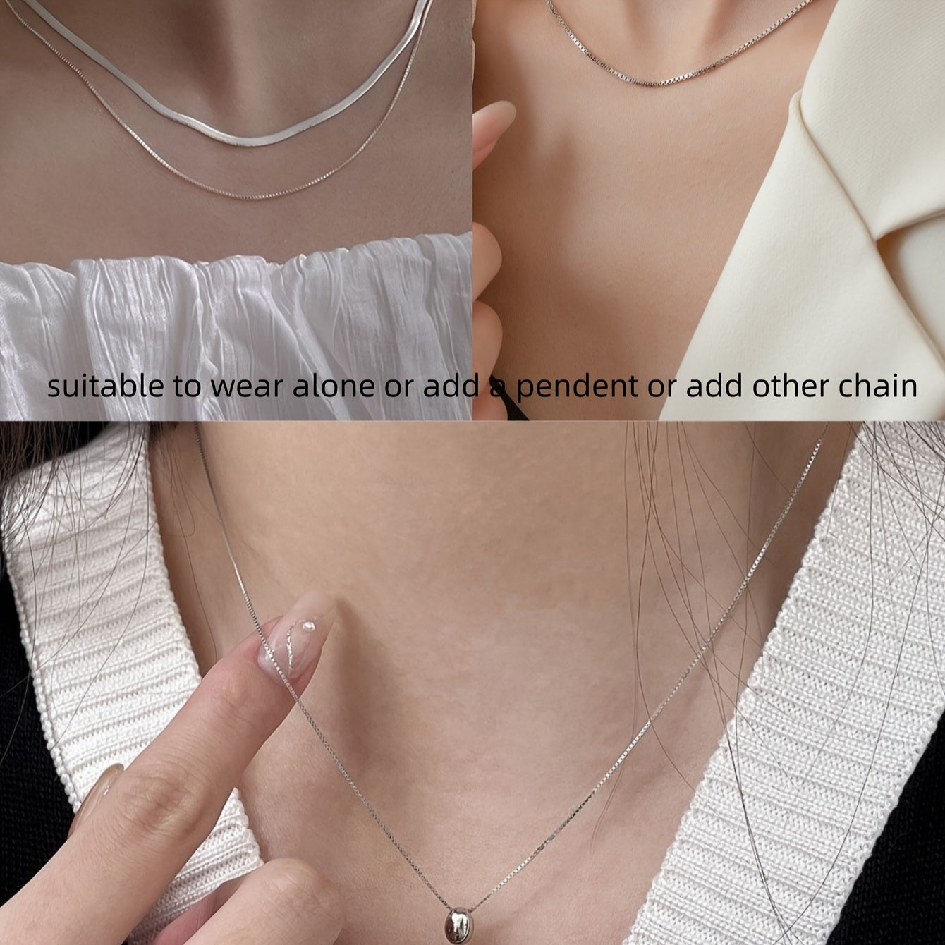 Elegant 925 silver necklace with box chain, perfect for daily wear. Available in lengths of 40, 45, 50, and 55cm, weighing 2.5-3.3g.