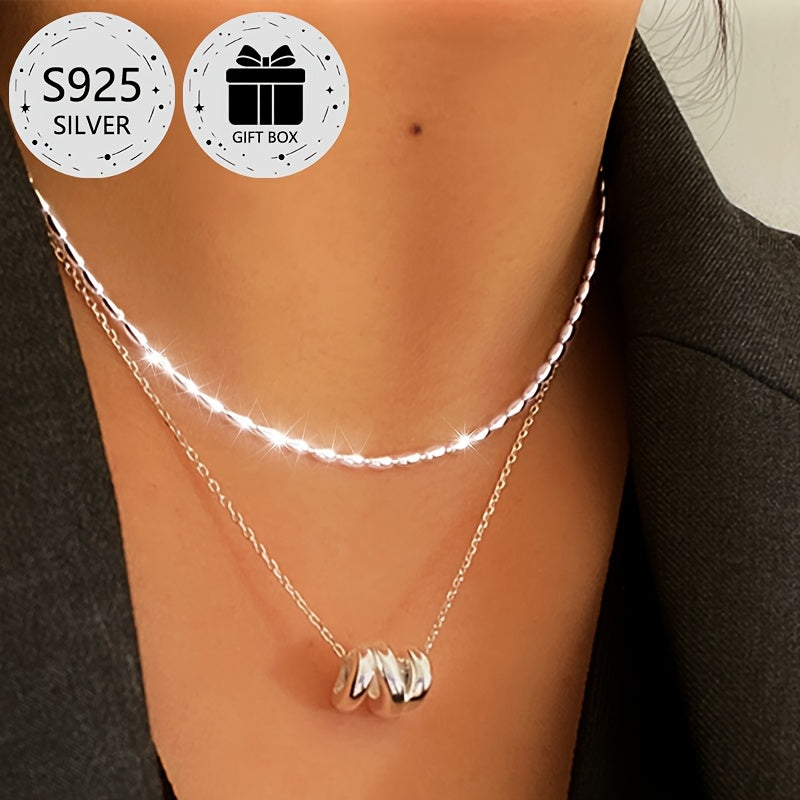 This 925 sterling silver choker necklace features a classic olive bead chain design that is versatile for daily wear, weddings, parties, and festive occasions.