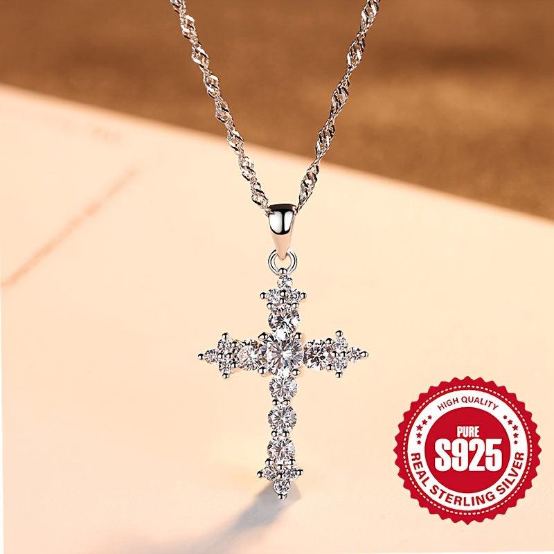 925 Silver Cross Wave Necklace for Women - Stylish Gift