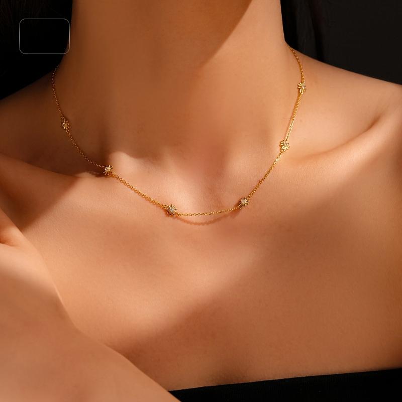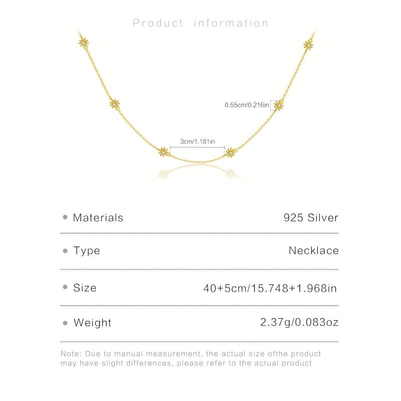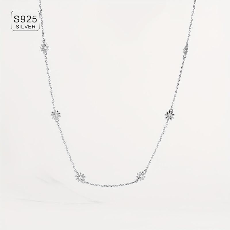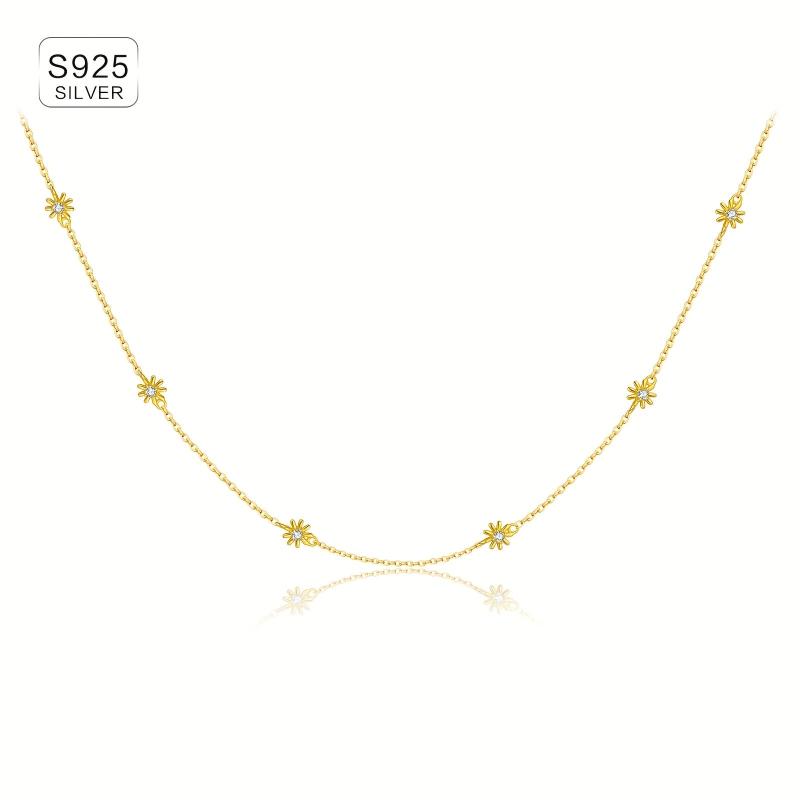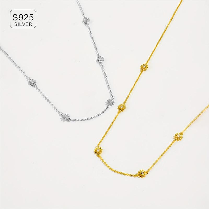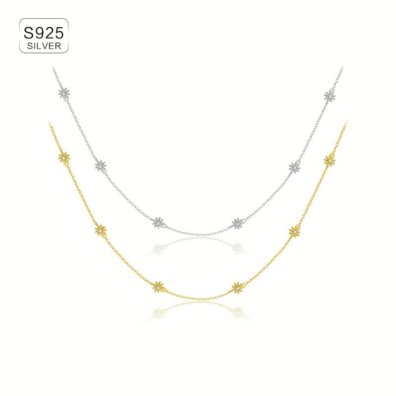 Elegant chain necklace featuring daisy decoration set with sparkling synthetic zirconia. Made of 925 sterling silver and 18k golden plated, perfect as a Valentine's gift.