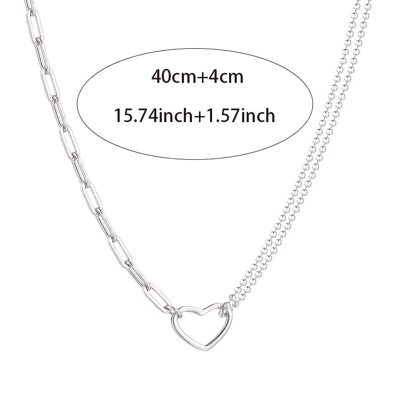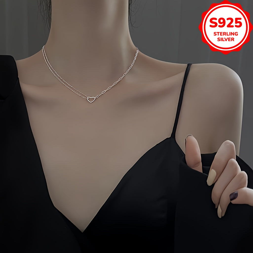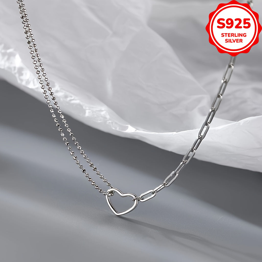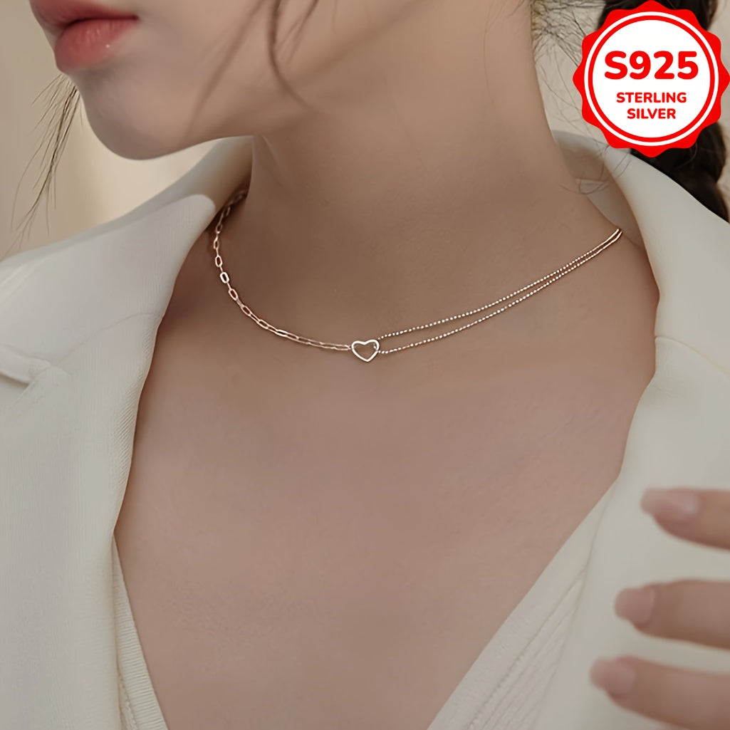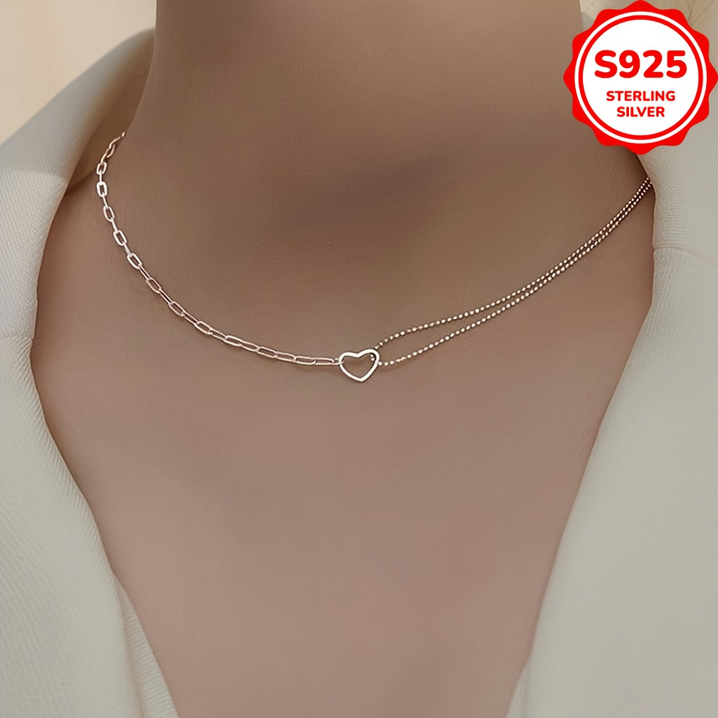 925 Silver Double Heart Pendant Necklace Asymmetrical Chain