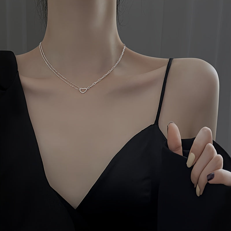 Elegant necklace with double heart pendant, perfect for daily wear or special occasions.