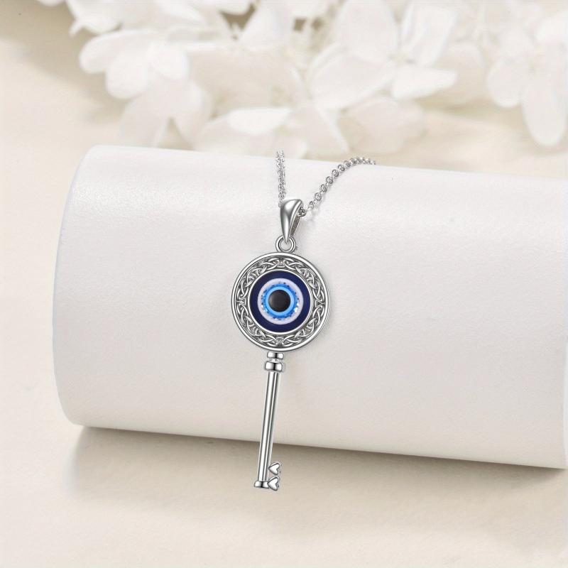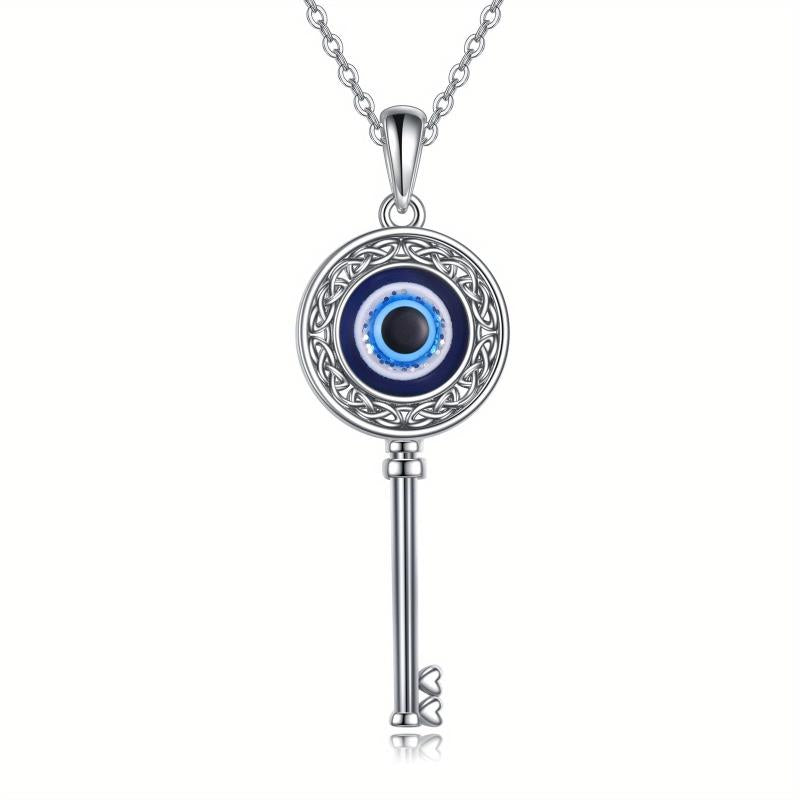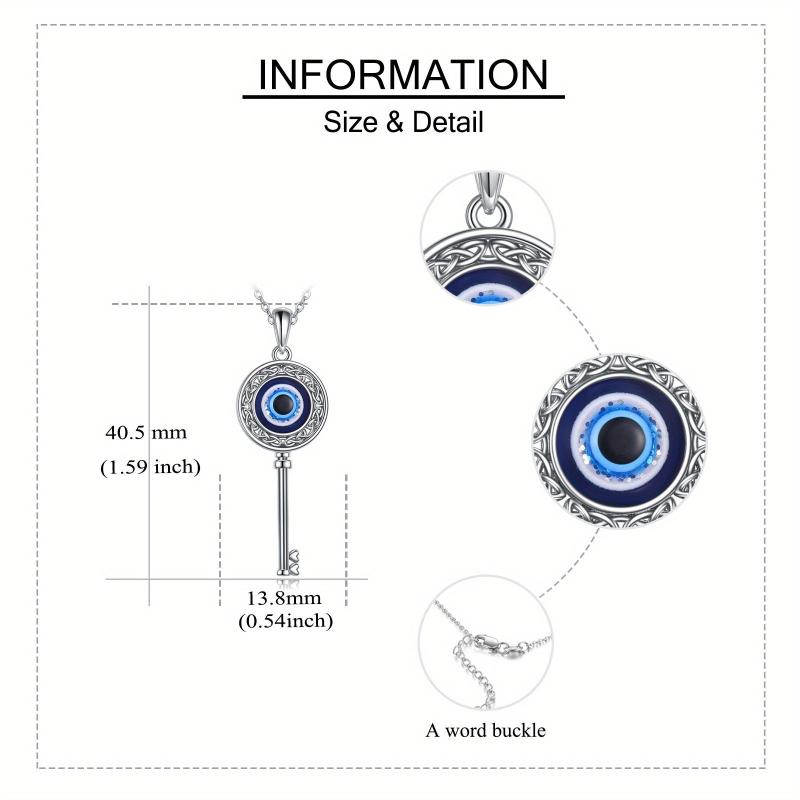 925 Silver Evil Eye Necklace Celtic Key Pendant Protection Jewelry