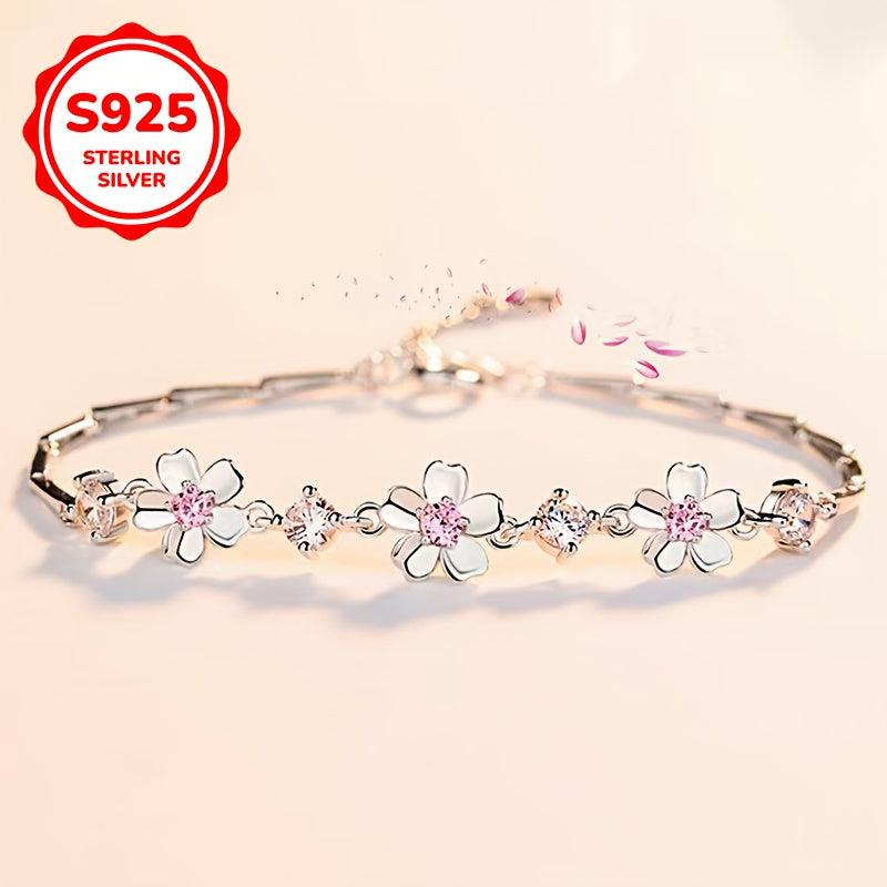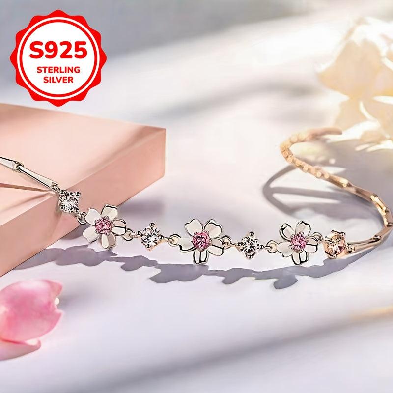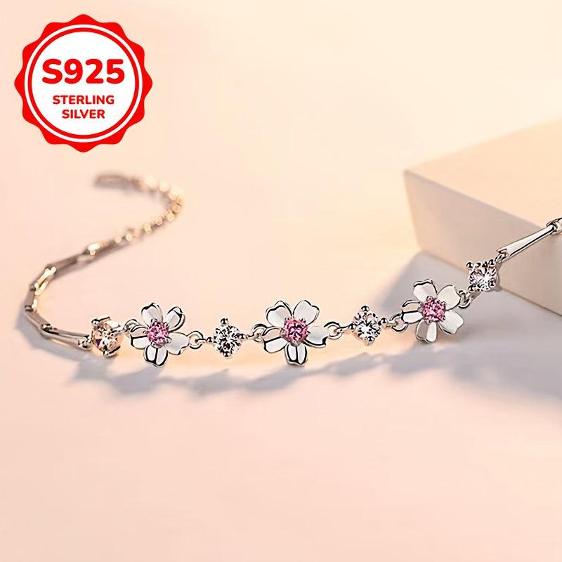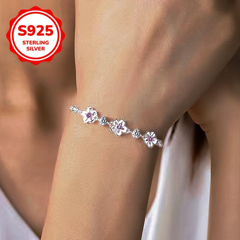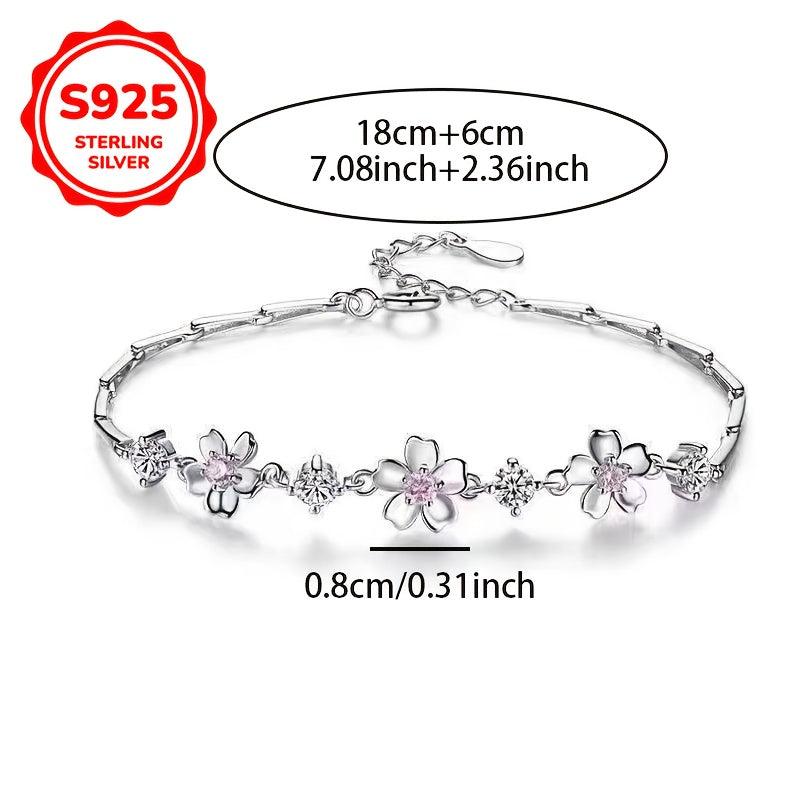 This stylish floral bracelet is made of 925 silver, perfect for gifting. Hypoallergenic design suitable for sensitive skin.